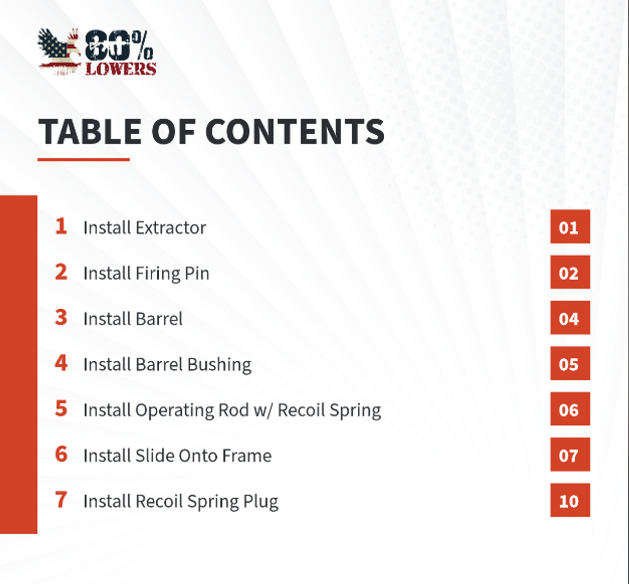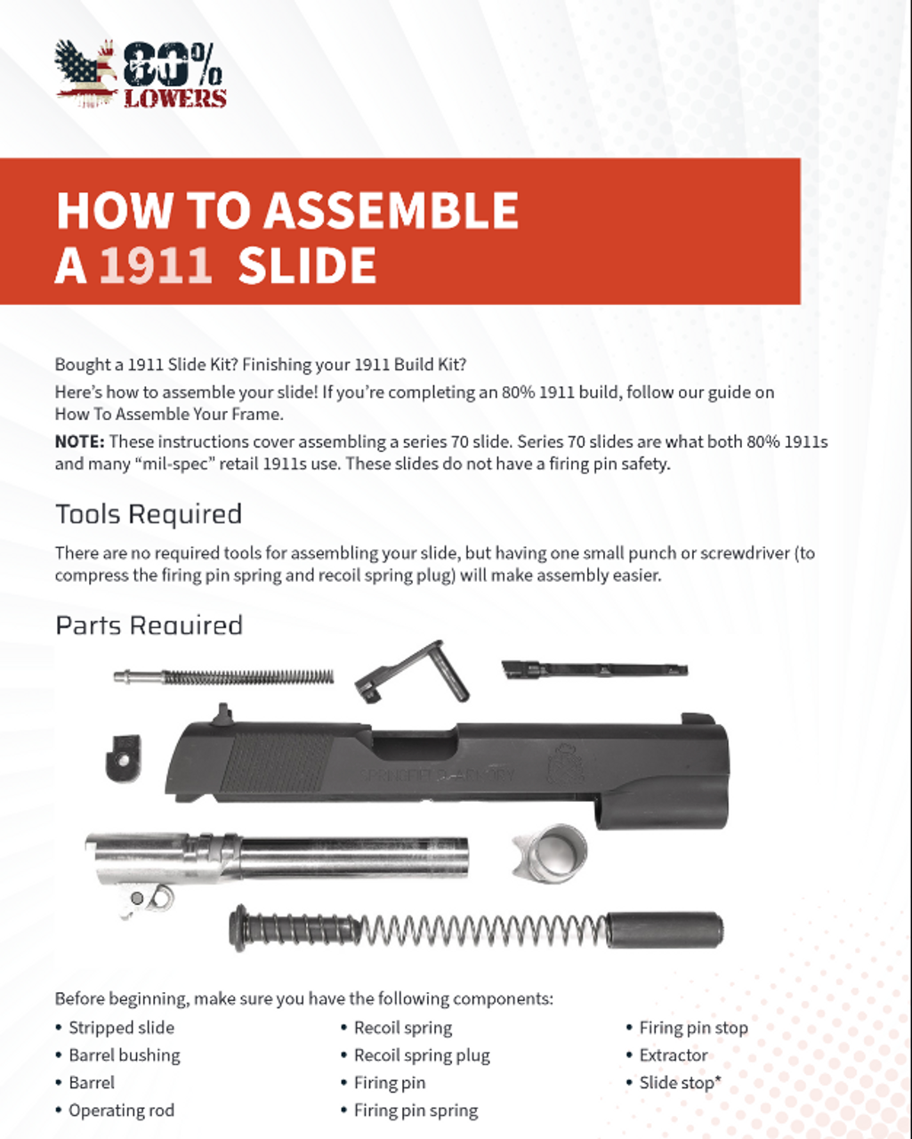 This step-by-step downloadable guide describes how to assmble a 1911 slide