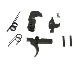 The fire control group contains the most important pieces of the LPK: The hammer, hammer hook and hammer spring, trigger and trigger spring, disconnector and disconnector spring, and the trigger and hammer pins for installing those parts in the stripped lower. All these parts sit inside the main cavity of the lower receiver.