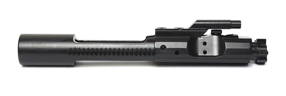 The bolt carrier group (BCG) rests inside the stripped upper receiver. The BCG is responsible for igniting live rounds with the firing pin and hammer. The BCG is one of the most important parts of the AR-15.