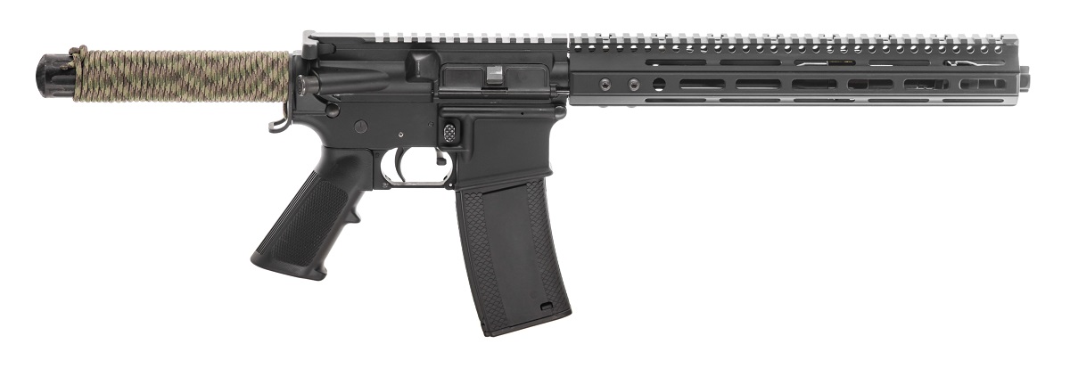 A: An AR-15 pistol is an AR-15 with a barrel length less than 16", and no vertical foregrip or stock installed on the buffer tube. If the ATF gets their way, you won't be able to use a pistol stabilizing brace with virtually any other accessories (like angled foregrips, sights, or optics of any kind) either. You also won't be able to own an AR pistol longer than 26" or heavier than 7.5 pounds (120 ounces) with a brace. It'll automatically be considered an SBR. We know, it's stupid.