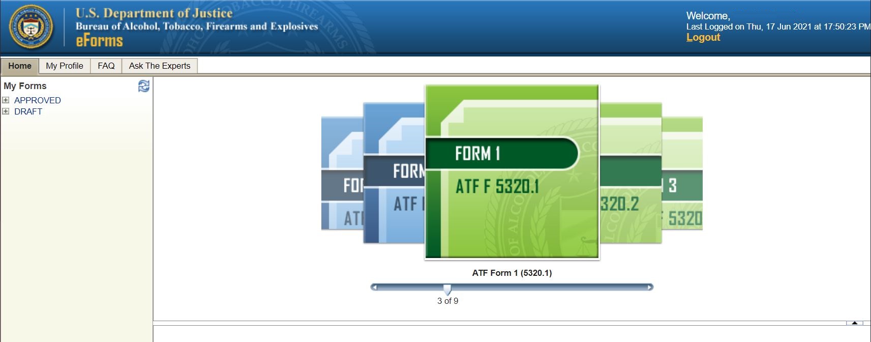 When you log in, you'll be brought to a dashboard with a scroll bar and a series of digital applications at the top-center of the page. Click right until you find the green icon labeled "Form 1 ATF F 5320.1". This is the application you must fill out for your SBR.