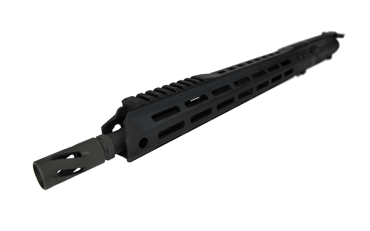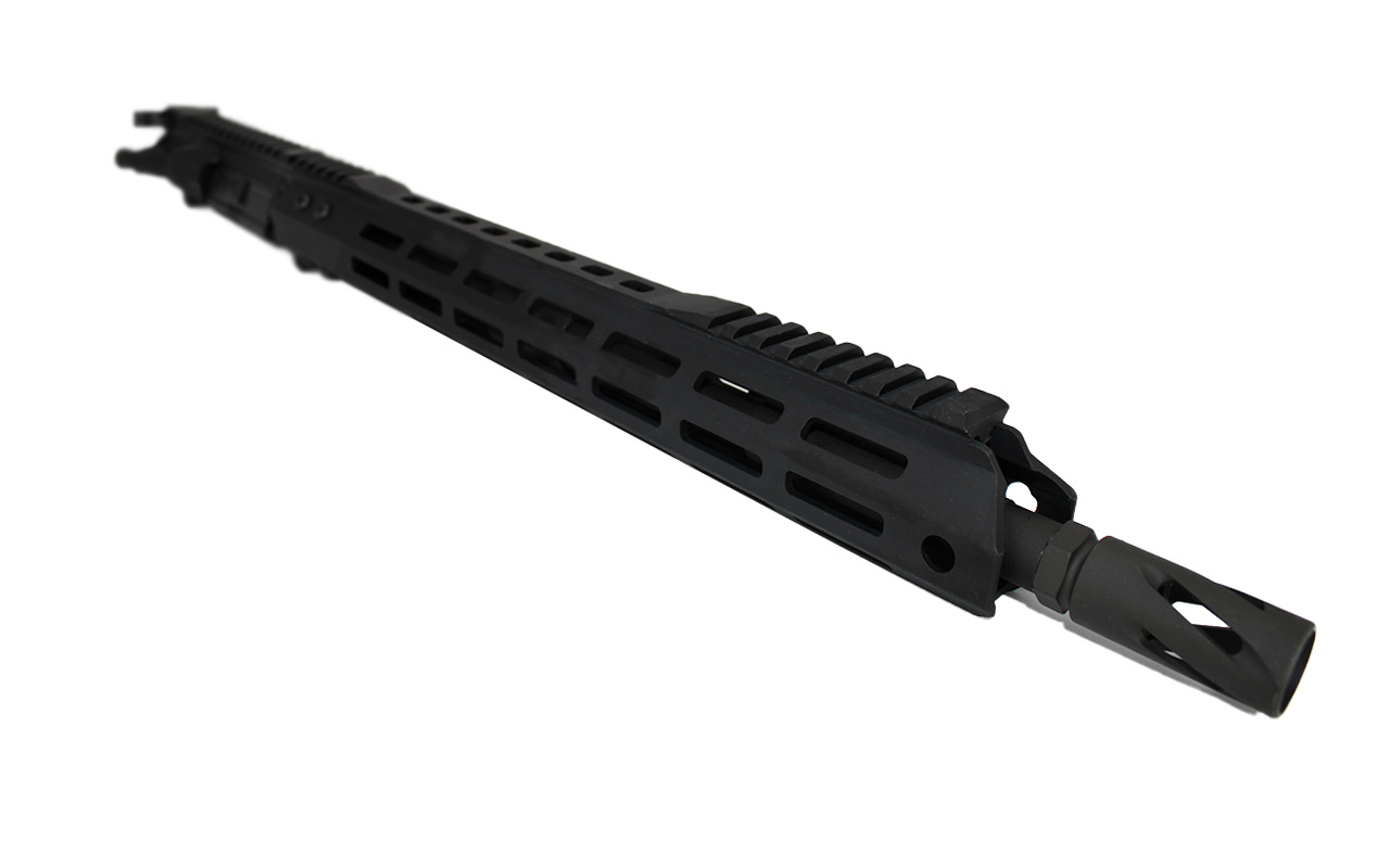 The upper in this kit ships with a 16" parkerized barrel and 15" free-floating M-Lok handguard. You also get a quality lower parts kit with a smooth trigger. Fabricate or buy a stripped reciever for final assembly, then hit the range.