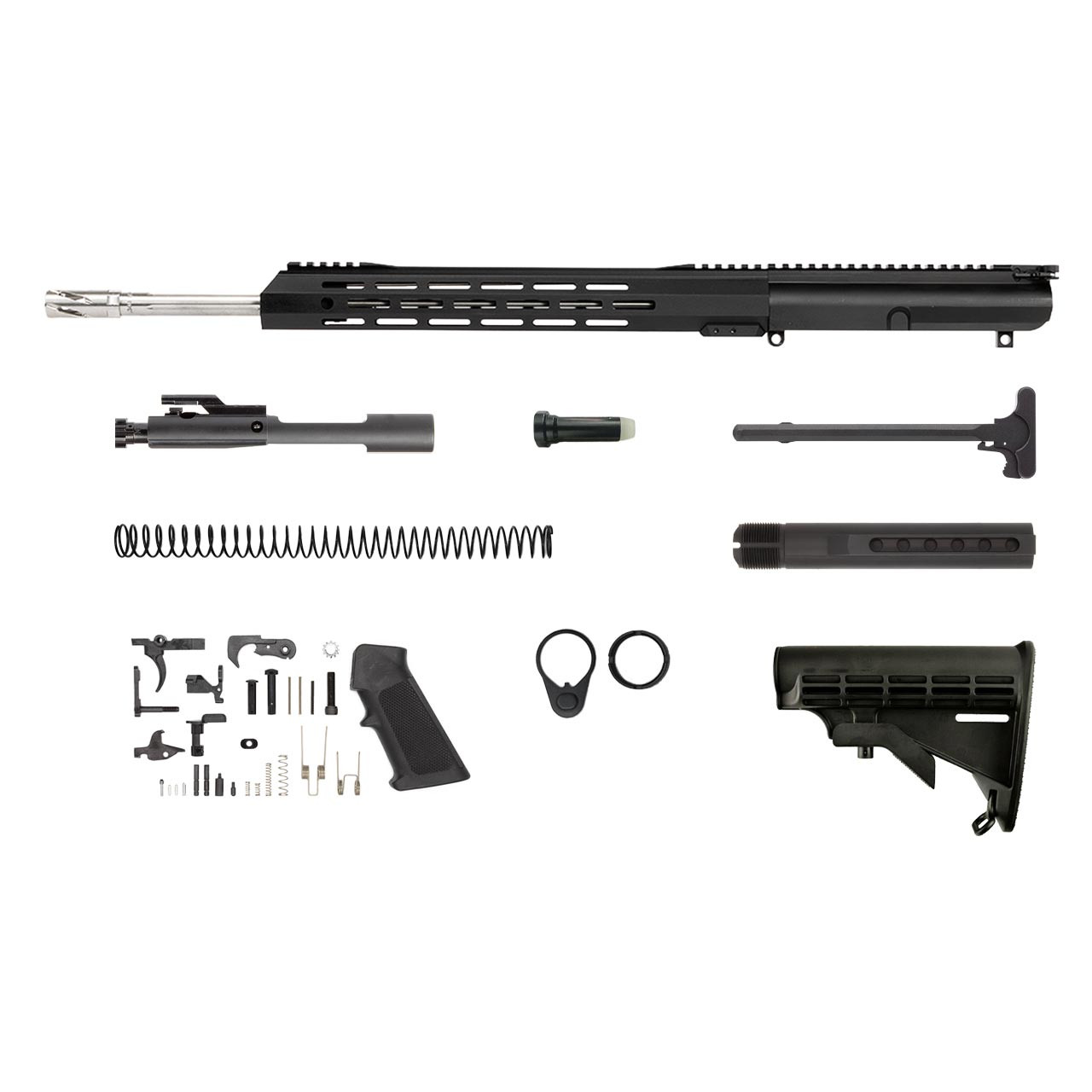 Build your LR-308 rifle with this kit, and then really stretch out with your shots fired and go the distance. Up close, they'll be blinded by the luster of your stainless steel barrel and compensator, while off in the distance they'll hear the clang of your lead slamming steel. This build kit comes with a 20" match barrel made of416R stainless steel, so you can count on it lasting the entire life of your LR-308.
