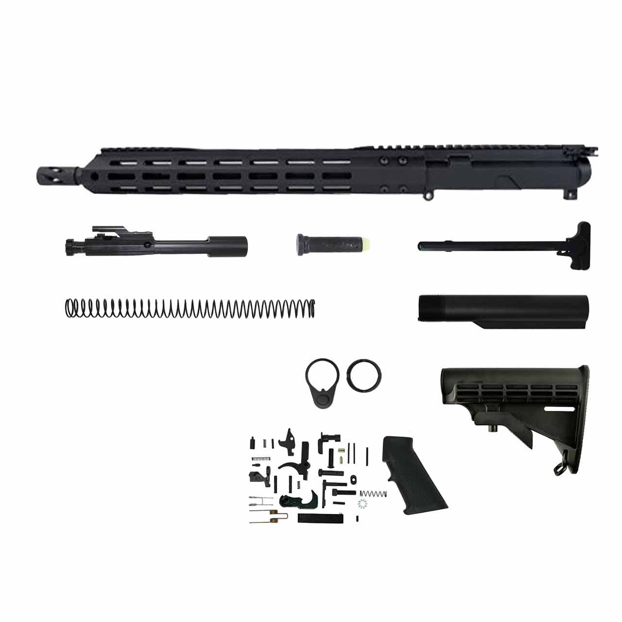 This 16"-barreled 9mm AR rifle kit is the tack-driver you need if you're looking for blowback functionality with the laser precision of the AR platform. It comes fitted with a mil-spec 4150 CMV barrel, forged to afford MOA accuracy or better within 150 meters. It sports the gold standard 1:10 twist rate necessary for accurizing just about any 9mm loads, with a free-float M-Lok handguard that provides all the space you need for accessories, a pistol grip, or a bipod.