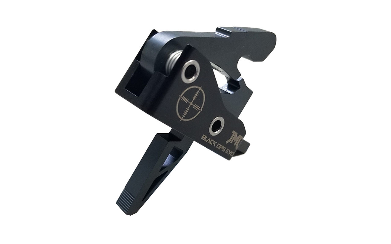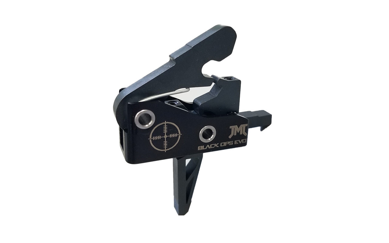 The JMT Black Ops is a single-stage trigger with a drop-in design for quick and painless installation. Its pull weight comes in at a lighter 3.5 to 4 lbs, it features quicker resets, super-crisp breaks, and the trigger itself has been skeletonized for even lighter trigger actuation. See below for more info.