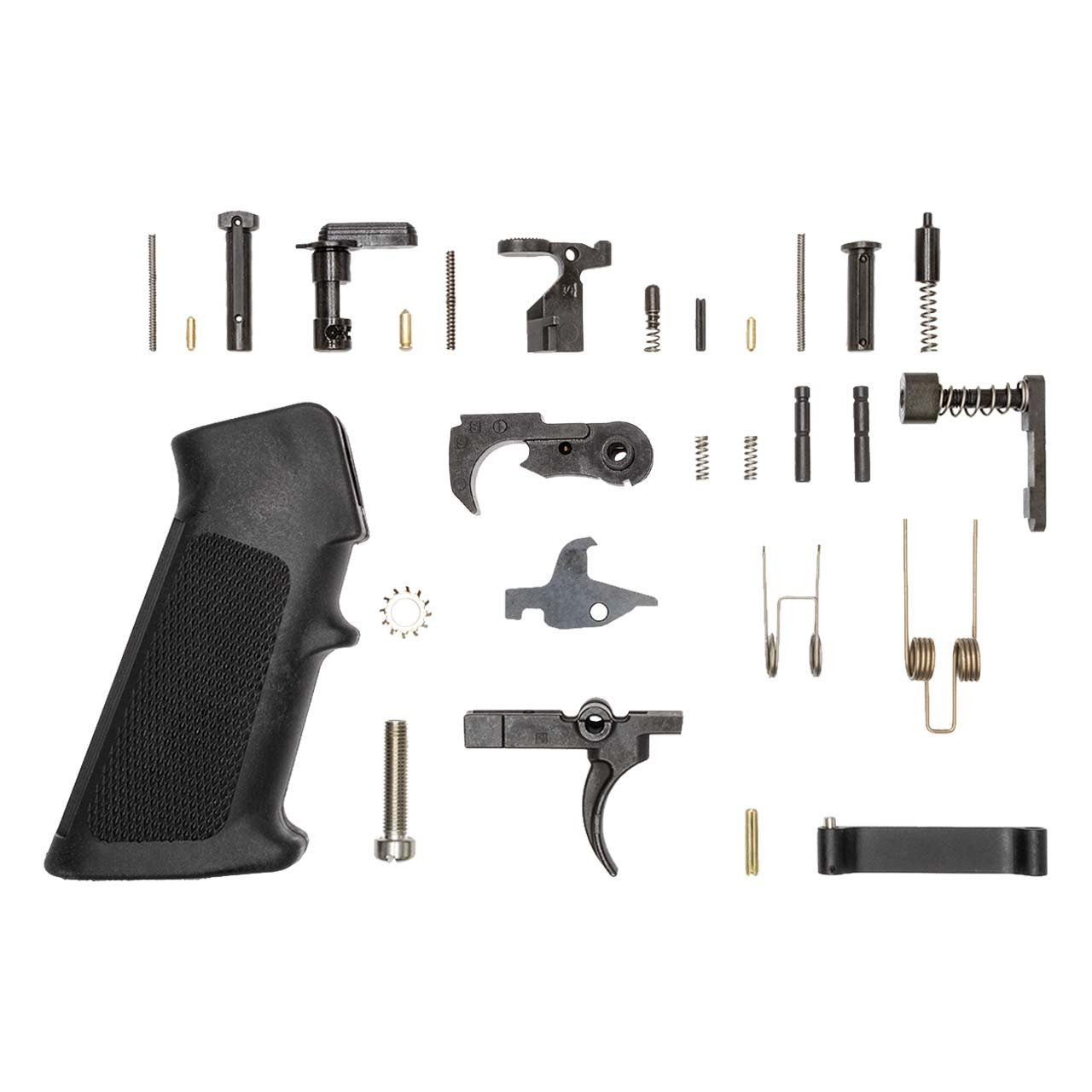 This AR-15 Lower Parts Kit includes all components required for assembling your AR-15 stripped lower receiver, minus a buffer tube kit (sold here).