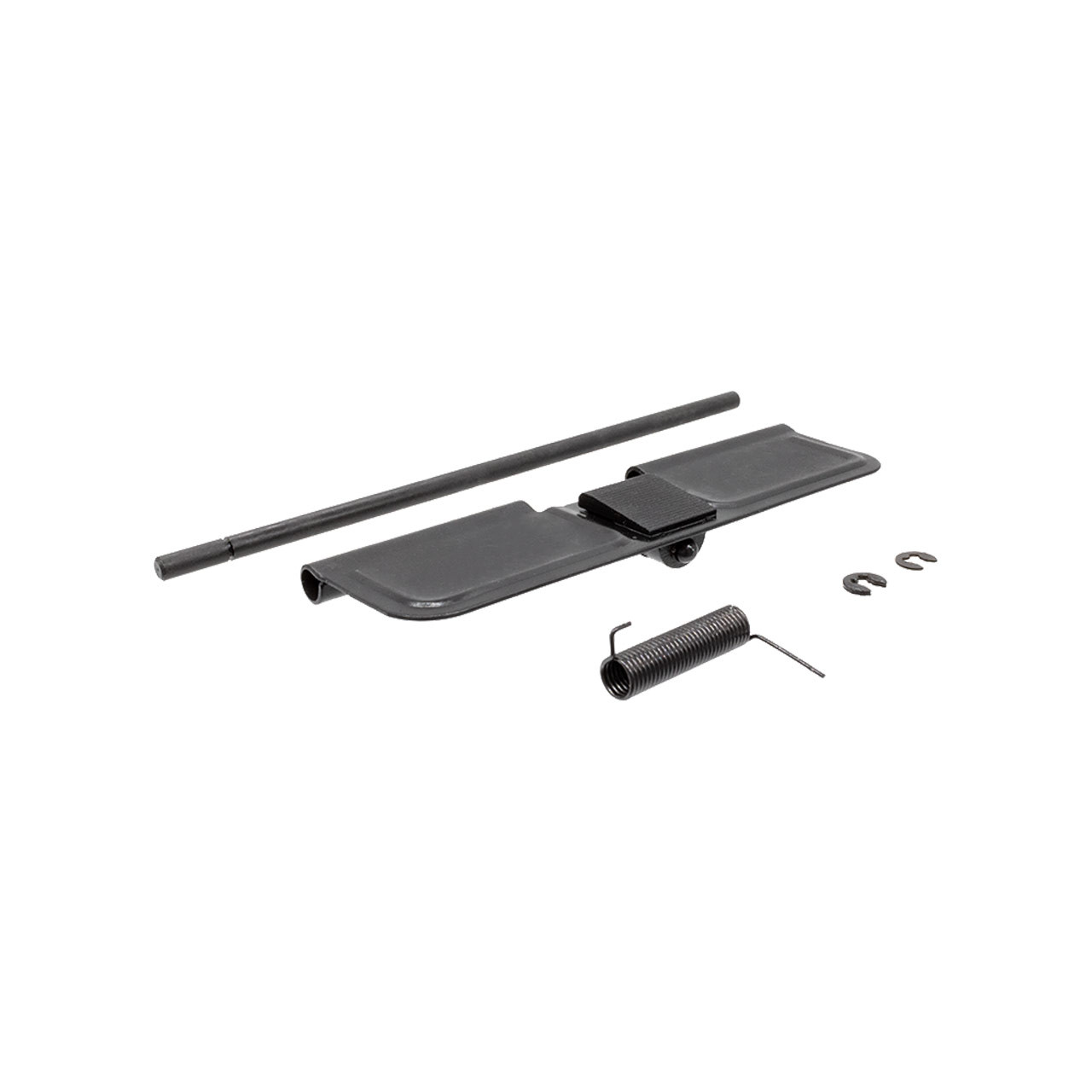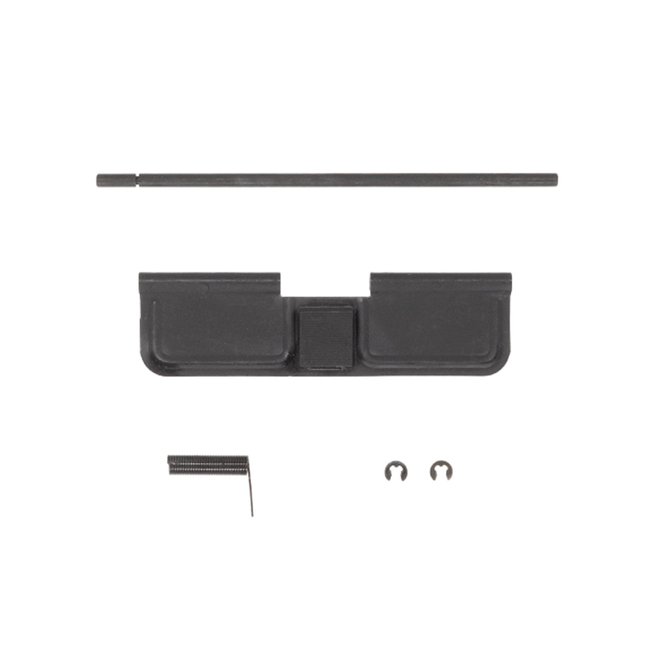 This mil-spec AR 15 dust cover includes a rod and spring for installation. The cover is finished with a standard black anodized coating, ensuring it matches all standard, stripped AR-15 upper receivers in color and finish.