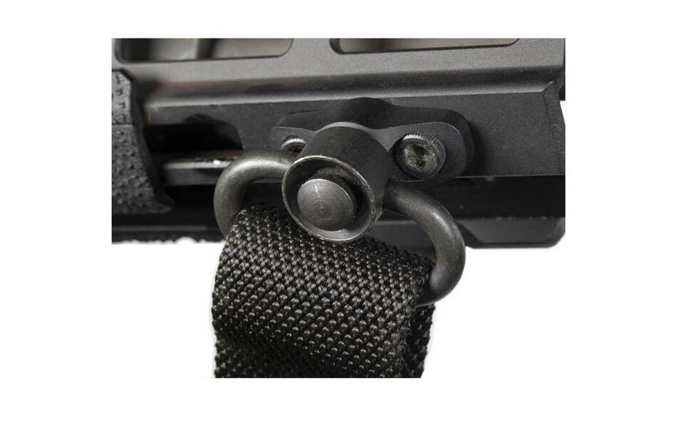 The Magpul M-LOK QD Sling Mount is made from durable Mil-Spec anodized aluminum that is lightweight. This anti-swivel design offers beveled edges, preventing snagging and rotation. The M-Lok QD Sling Mount provides a forward attachment point compatible with push-button QD slings and the Magpul MS4 Sling.
