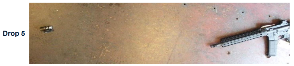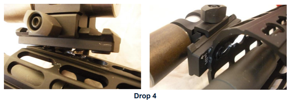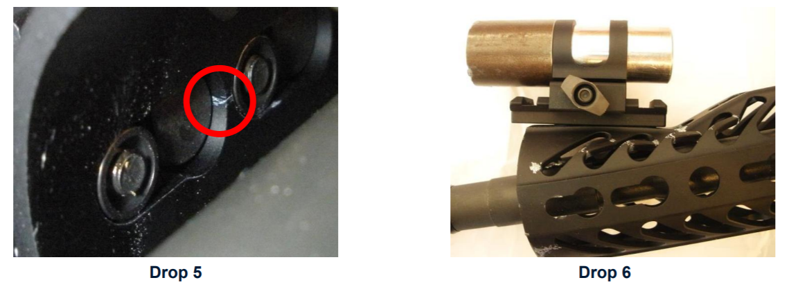 - Drop 4 caused a fracture in the handguard, but not near the accessory rail.