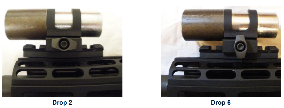 - Drop 2 caused a slight deformation to the rail, with no damage or loosening of the accessory.