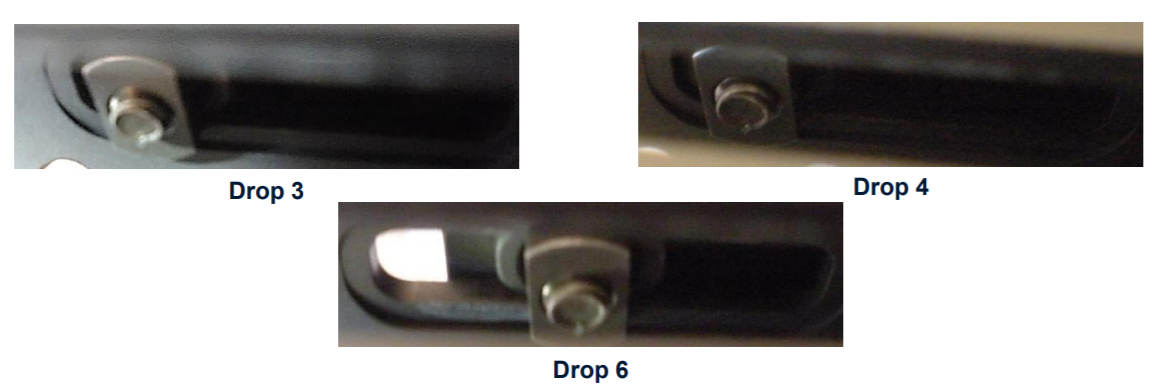 - Drop 4 caused additional slight rearward displacement of the rail inside the slot.