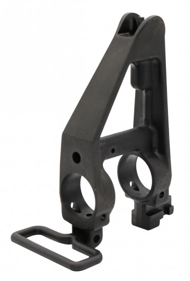 The A2 front sight post is the original gas block designed for the AR-15 by Eugene Stone in the mid-1950s. It incorporates both the front sight with elevation adjustments, and the port for the gas tube to connect to. Produced in anticipation of conventional warfare, most A2 blocks also include a bayonet lug and sling attachment. These blocks are not adjustable, though they're often the most robust. The A2 FSB can be used with the traditional two-piece handguard, or a free-float handguard.