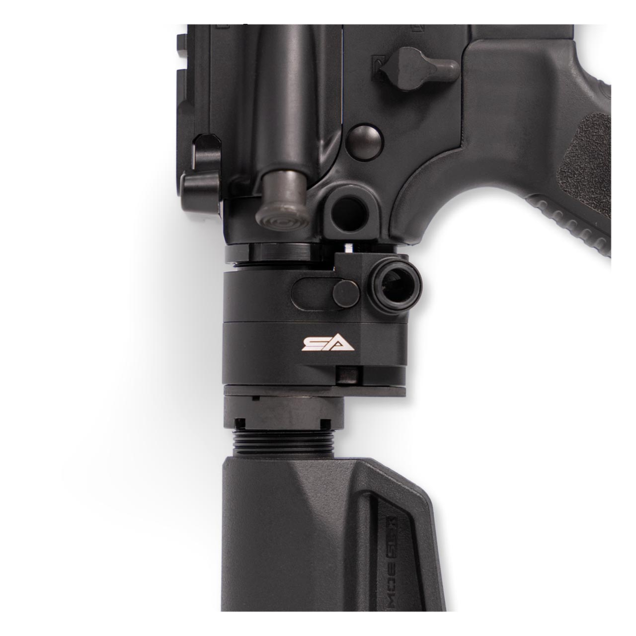 4. Finally, tighten the original castle on the original buffer tube, securing the tube to the Adapter. Follow Sylvan Arms' install video for additional help.