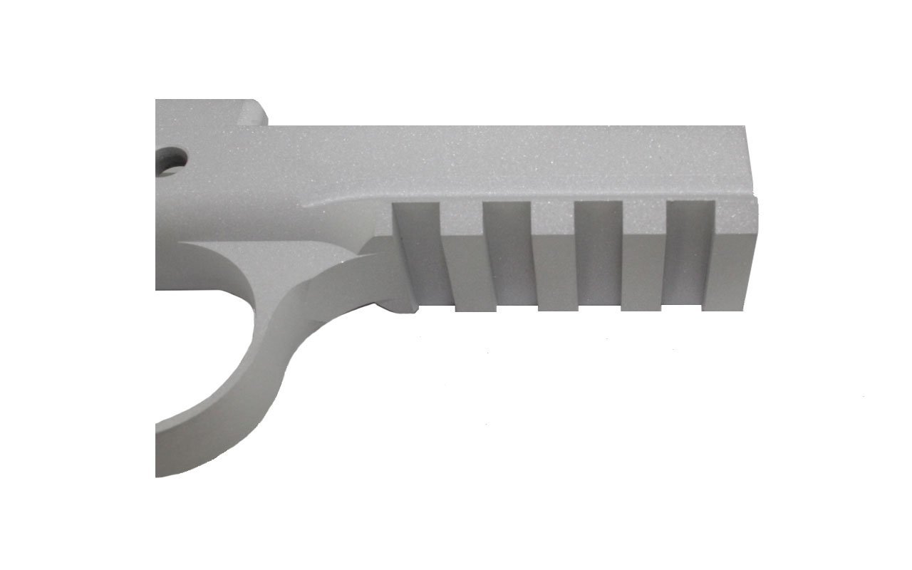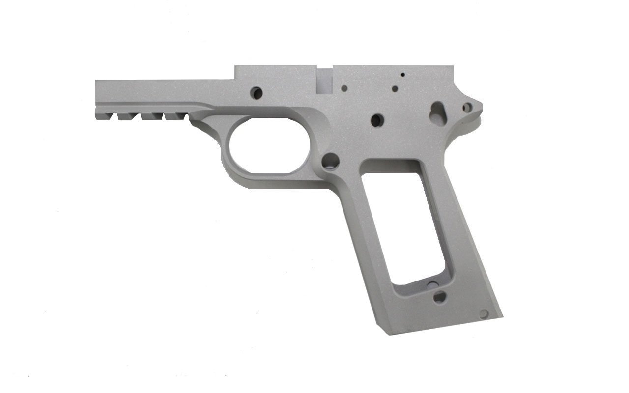 The .45 ACP Government Tactical 1911 80% Frame is CNC-Machined using 7075 heat-treated aluminum. This bead-blasted frame's perfect for building a custom 1911 from the ground up. It's 60% lighter than a steel frame and is compatible with all standard 1911 parts. Its raw finish is ready for any custom coating or paintjob, so you can make it your own.