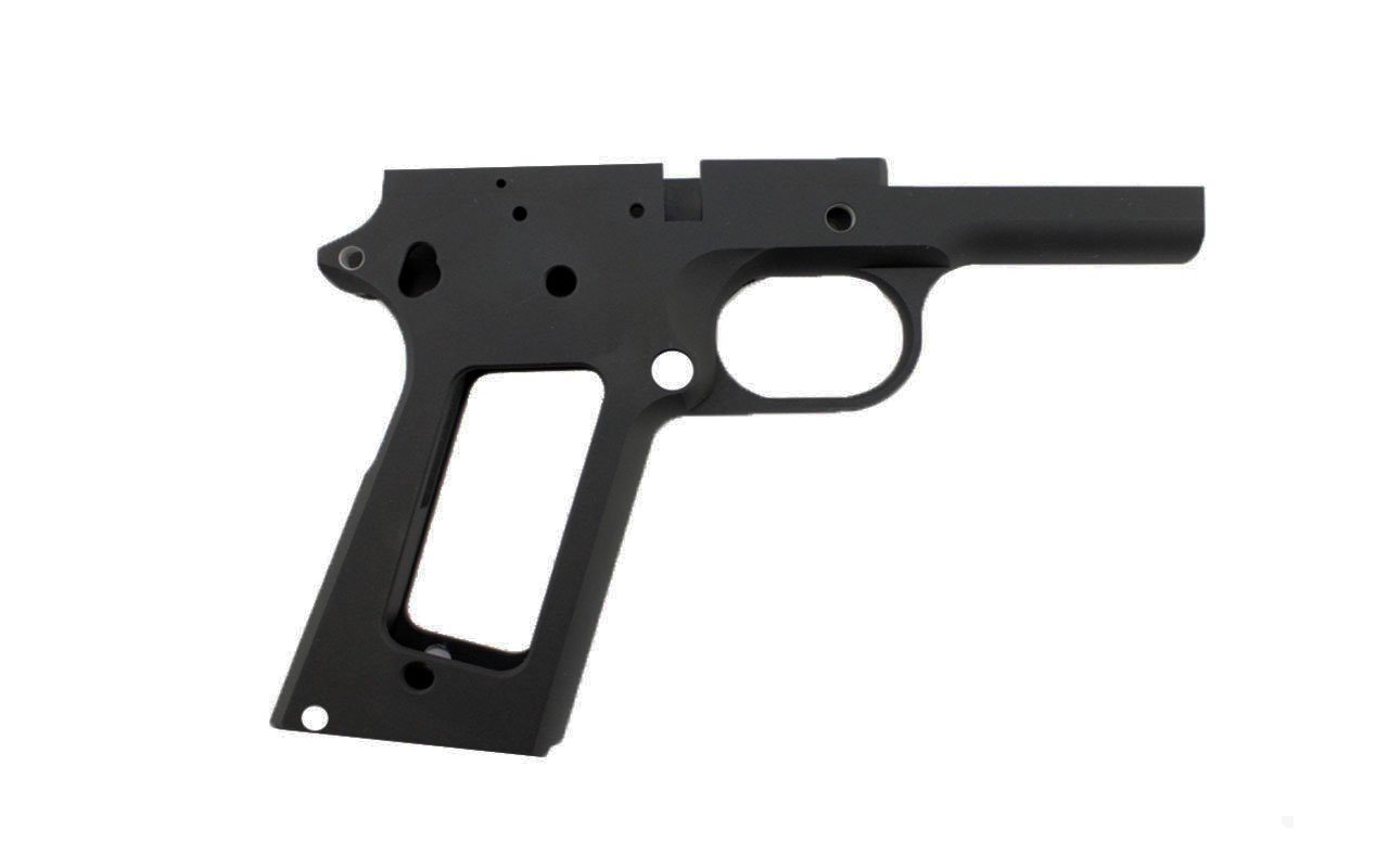 The .45 ACP Government 1911 80% Frame is CNC-Machined using 7075 heat-treated aluminum. Made from lightweight alloy instead of steel, this frame weighs 60% lighter once finished. It's perfect for customizing any 1911 from the ground up, too, since it's compatible with all regular 1911 parts. Fabrication is required.