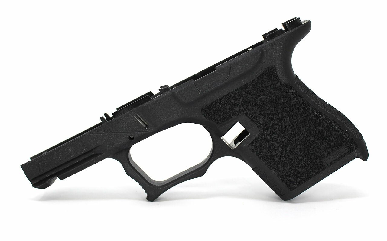 The PF9SS™ 80% Single-Stack Pistol Frame comes ready for finishing, thanks to Polymer80's jig and bits. This single-stack P80 frame features a factory-style grip texture and is guaranteed to be compatible with Glock® 43 components!