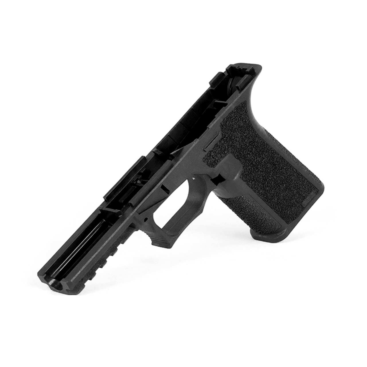 This frame features an extended beavertail and thumb ledge for better control. A double-undercut trigger guard enhances comfort, allowing for a firmer grip. Lastly, engineers upgraded the 22-degree grip angle to 18 degrees. This new angle provides better recoil control and quicker follow-up! Even with a new grip angle, the PF45™ is still compatible with OEM and aftermarket Glock® magazines.