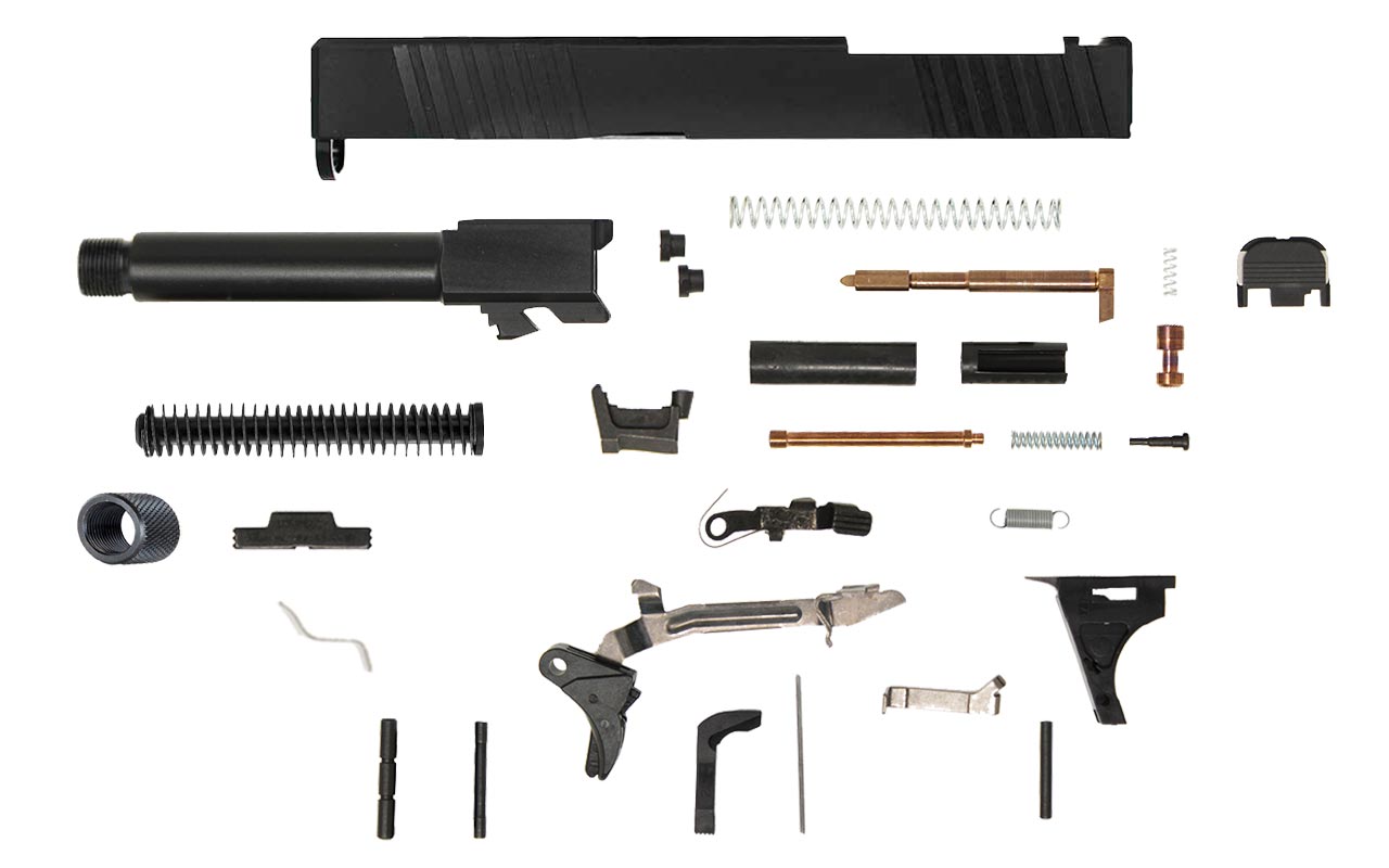 Got your own Glock® 19 frame or Polymer80 mid-size frame but need to revamp, restore, or just give it a fresh look? Then check out this slide and parts kit. If you've got a fabricated frame, here's your final assembly kit. Breathe some life into your gen 3 Glock® 19 or completed G19-compatible 80% frame with this slide, barrel and parts kit.