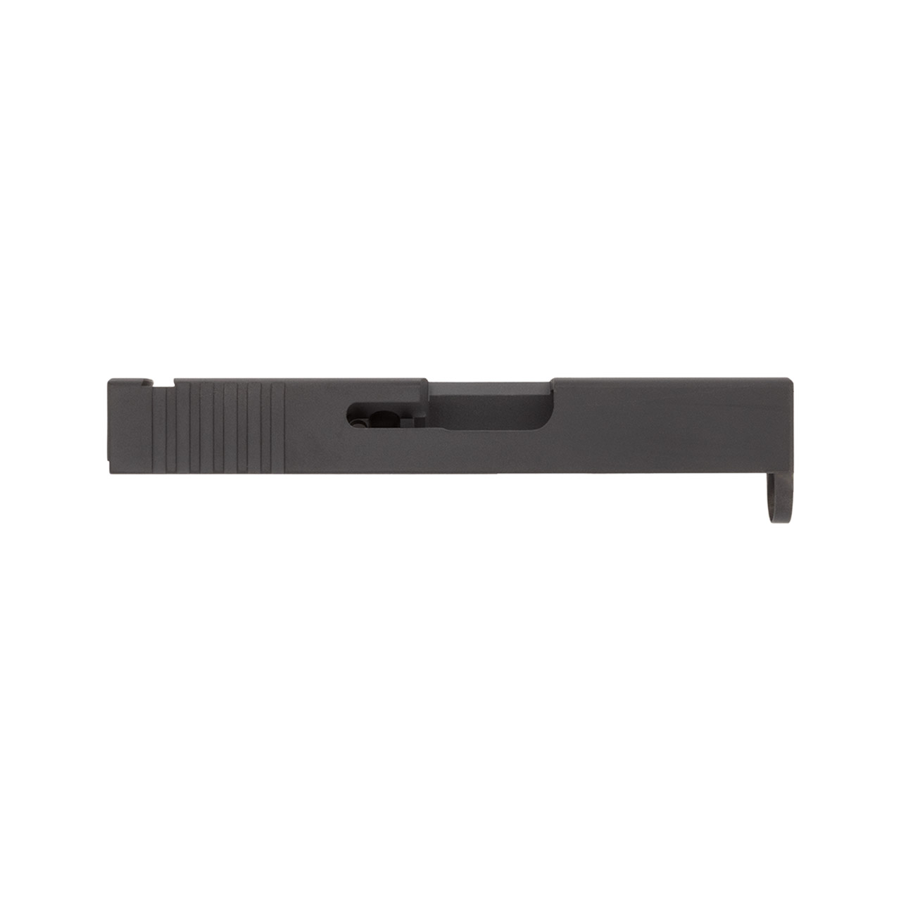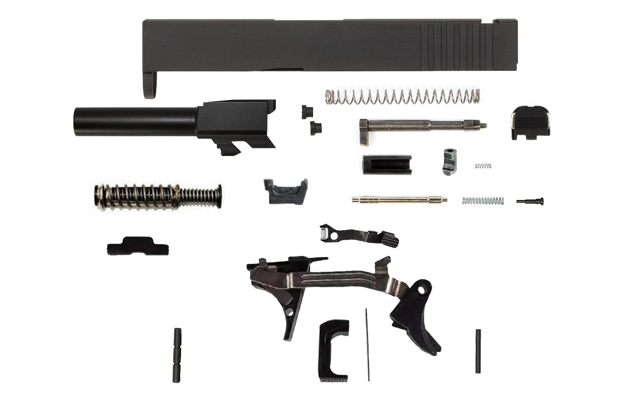 So check this out. This build kit when you combine it with either an OEM frame, a Polymer80 single stack, or a SS80 single stack 80% frame, will produce a Glock® 43 compatible 9mm sidearm with a black slide that comes pretty damned close to OEM save for the 80% frame you choose to go with it and then finish yourself. It includes a complete upper parts kit as well as a complete lower parts kit. Upon completion, all you'll need are the sights of your choice and of course mags and ammo. With this kit, please specify whether you'd like your barrel finished in black nitride or stainless steel. See below for more info.
