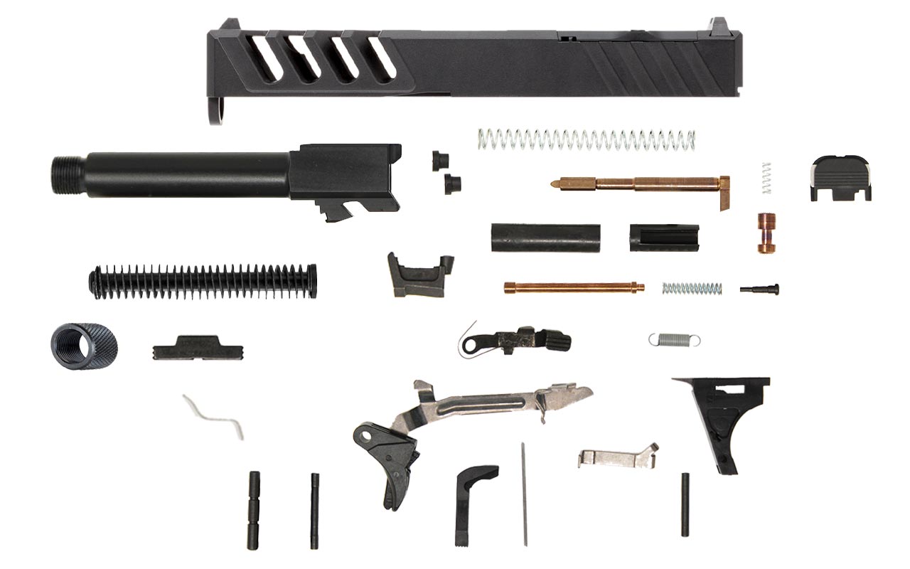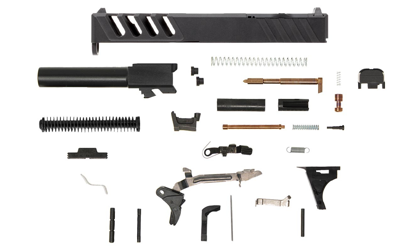 This kit includes the accessories and components you need to complete a frame and hit the range. This kit is compatible with Gen3 Glock® 19 components for further customization. These are the accessories included: