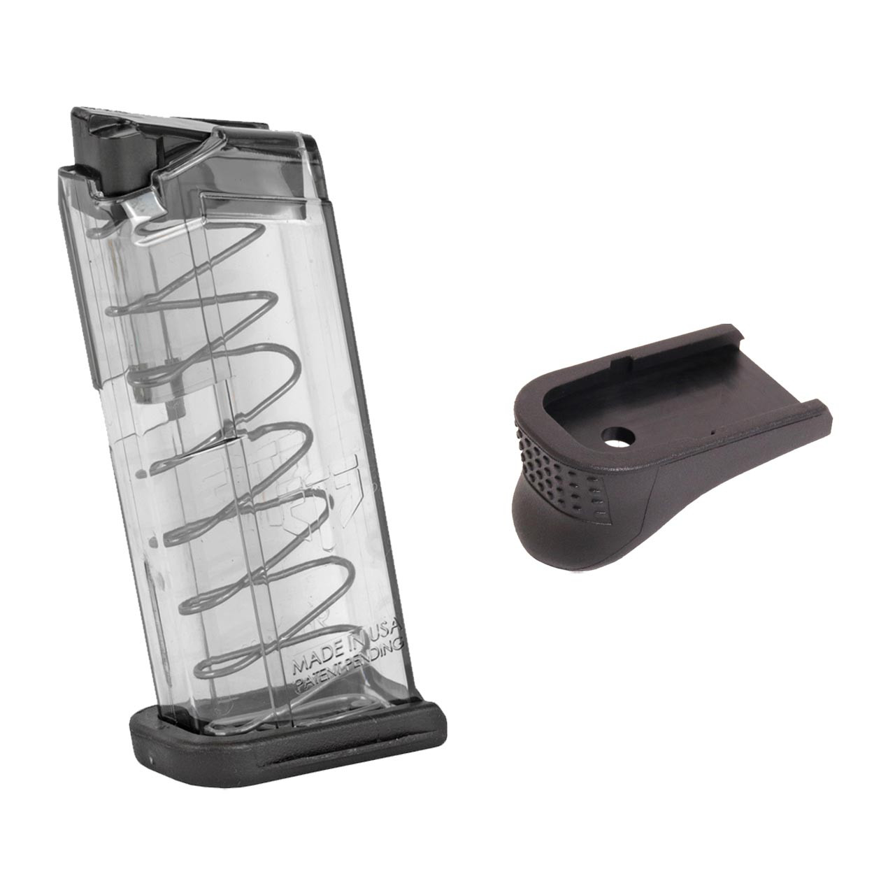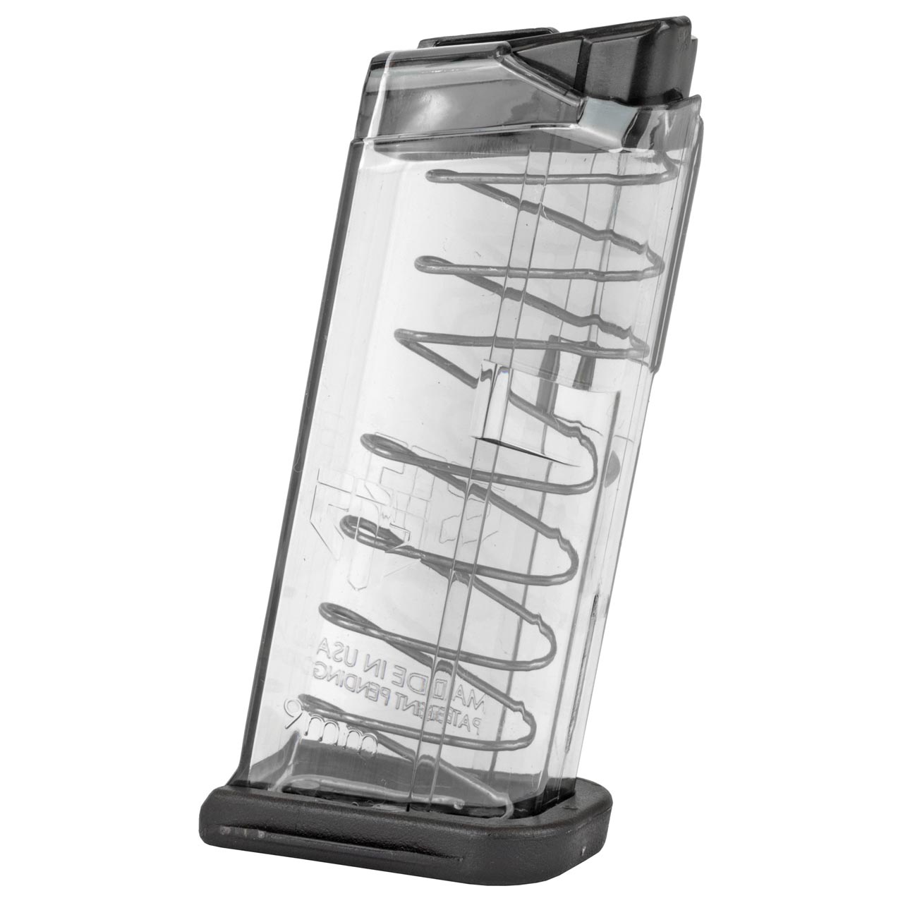 Some of us know exactly how many rounds we have left at all times. For the rest of us, now there's help, especially if you carry a G43. This is the ETS G43 7-Round Magazine with Pearce Grip Extension. Now whenever you take your G43 out for a day at the range, you can always tell how many rounds you have left. Simply pop the mag out, and see for yourself. The clear housing lets you see your remaining rounds and type of ammo in use. And don't worry, this isn't cheap plastic. This advanced polymer mag is extremely impact resistant and just as durable as metal or even OEM mags.