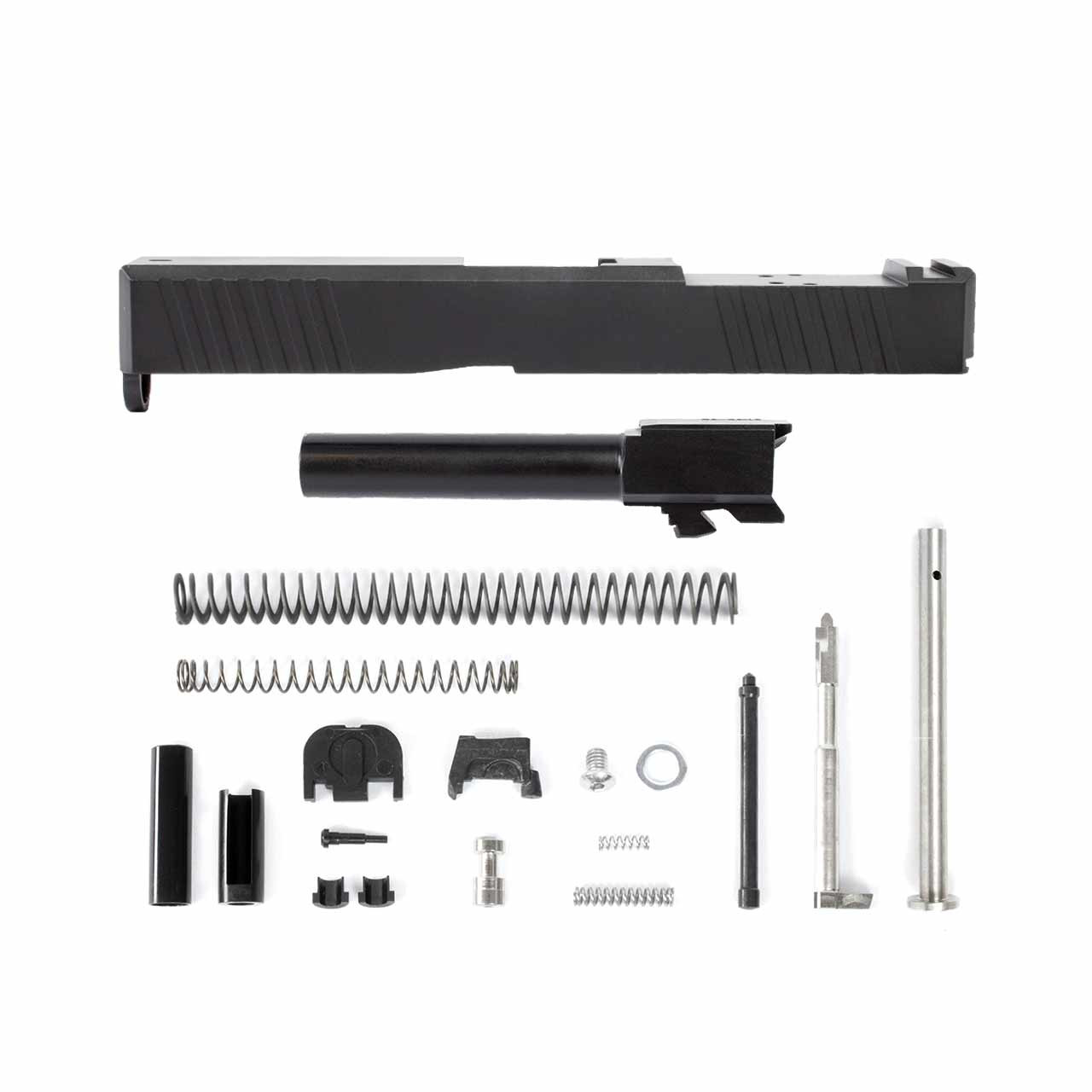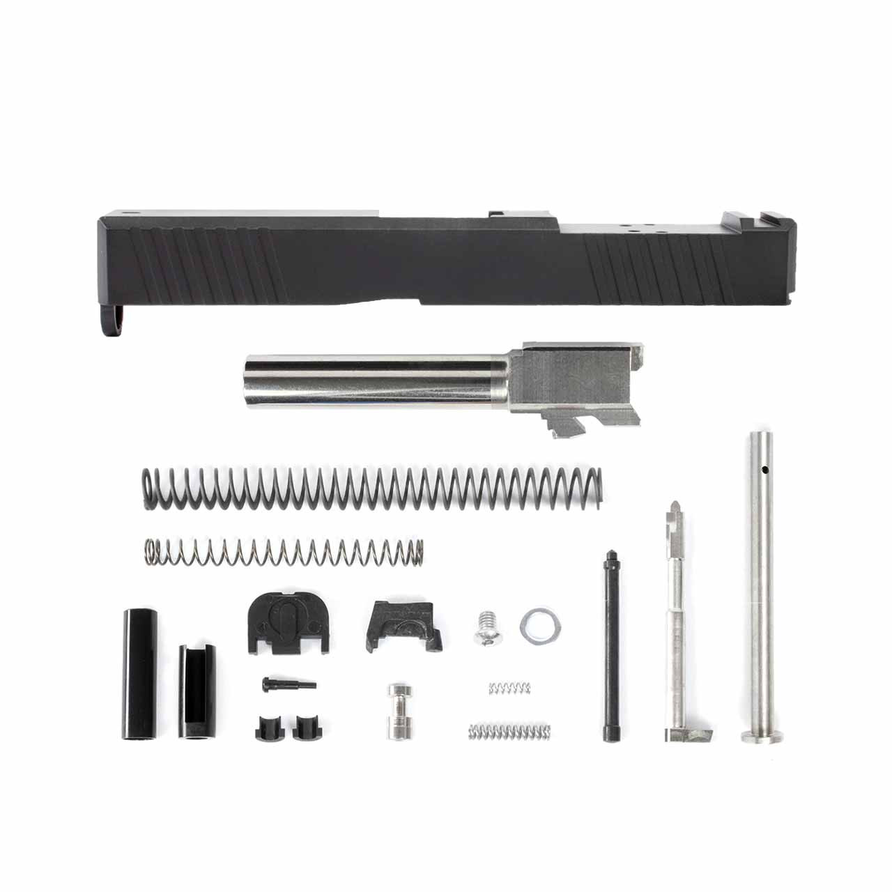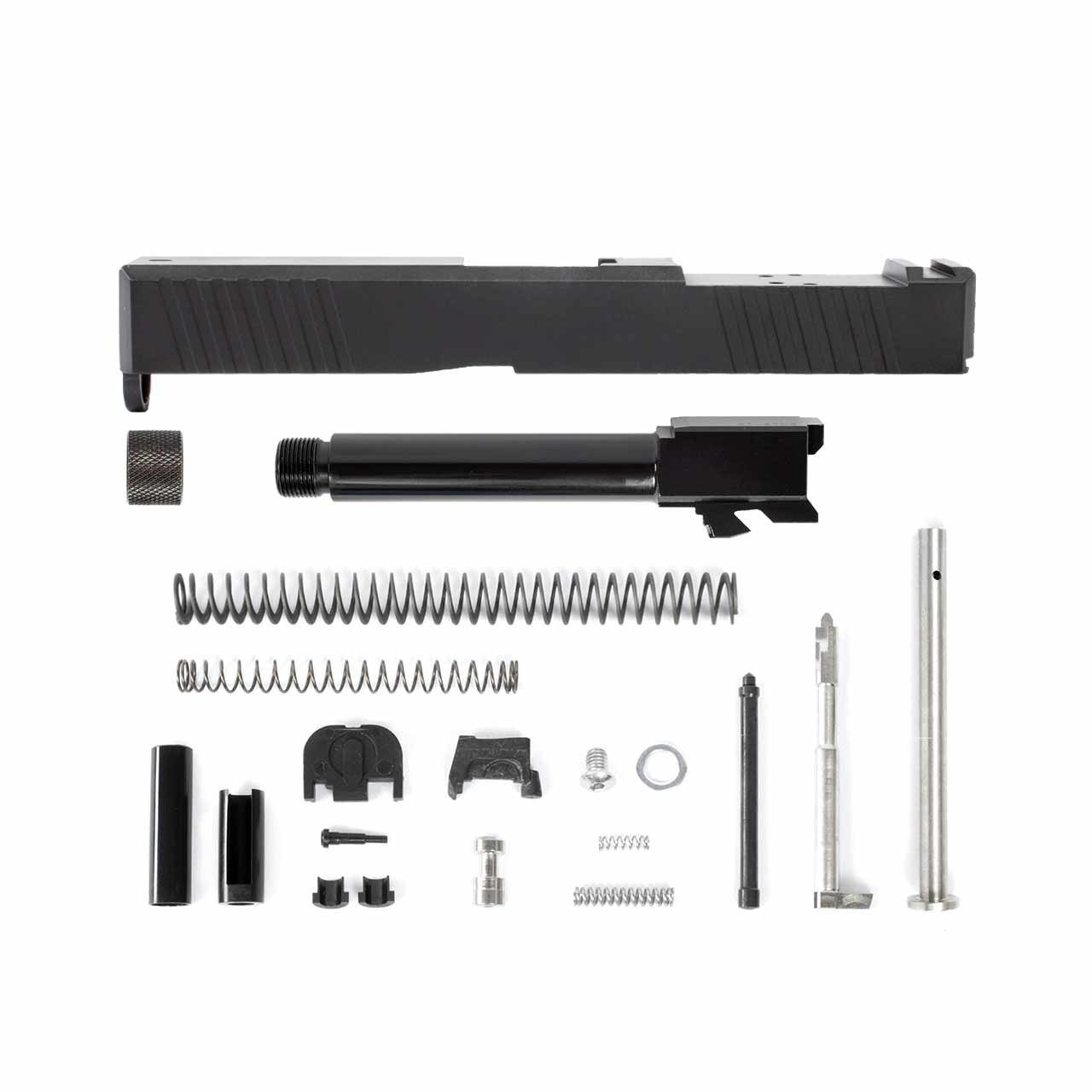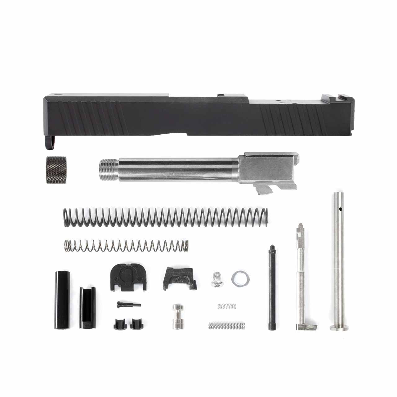 This kit comes with everything you need to assemble a custom slide, minus iron sights. Select a threaded barrel so you can add a muzzle device, compensator, or suppressor.