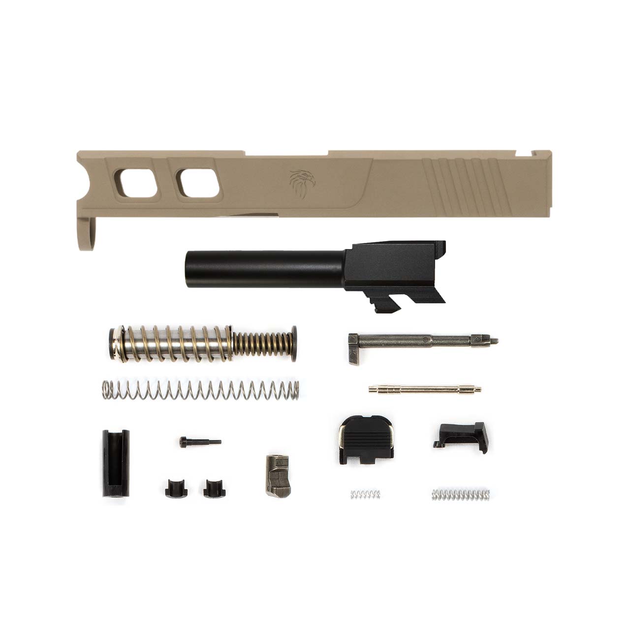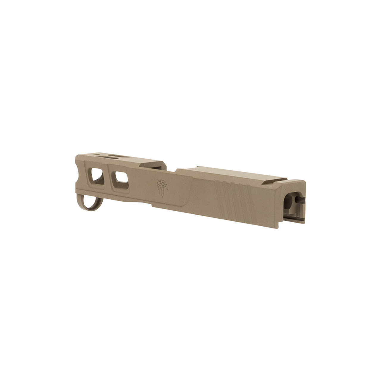 This slide's compatible with factory and P80 builds, and includes pre-cut mounts for mounting a quality red dot and iron sights. A durable Flat Dark Earth powdercoat finish, chamfered edges, and machined ports set this kit apart from all those plain black slides.