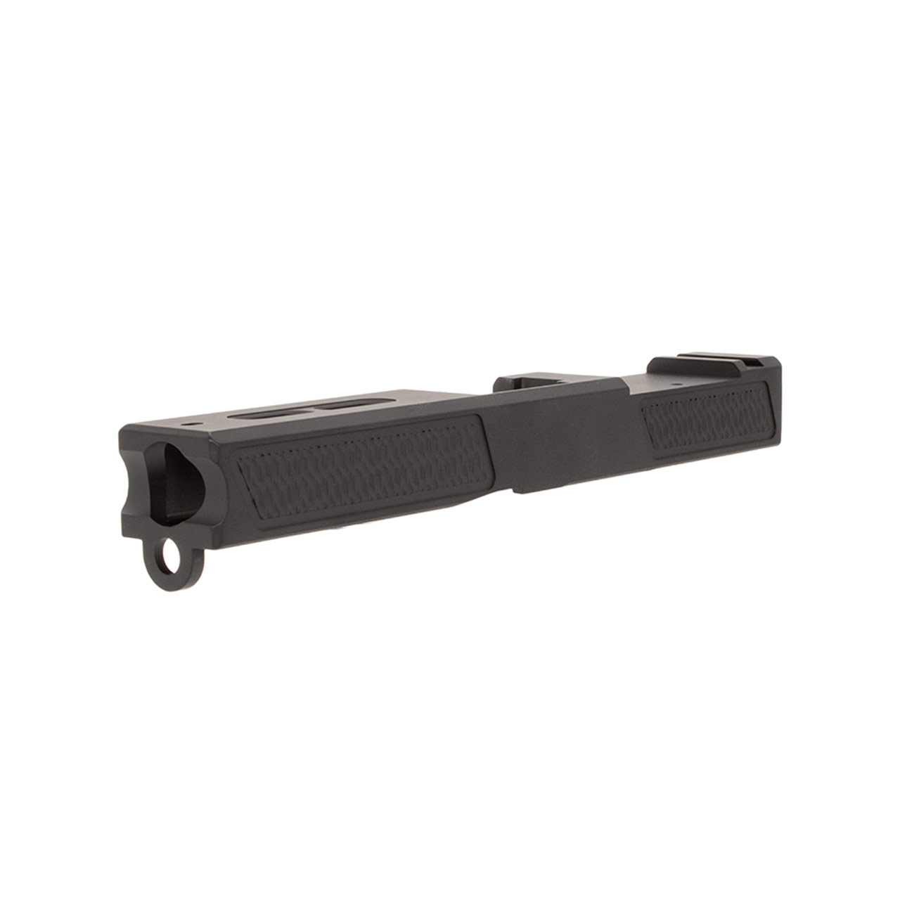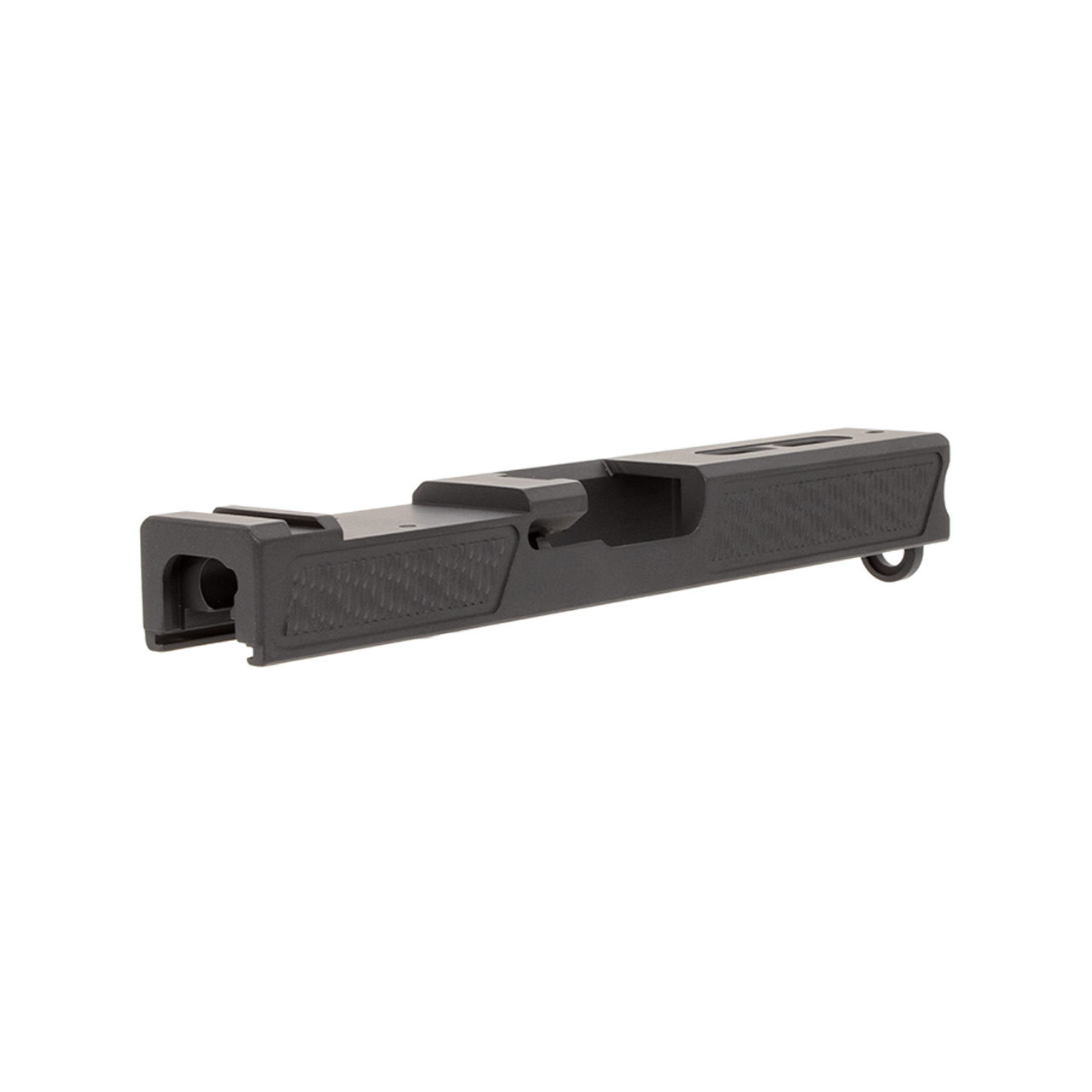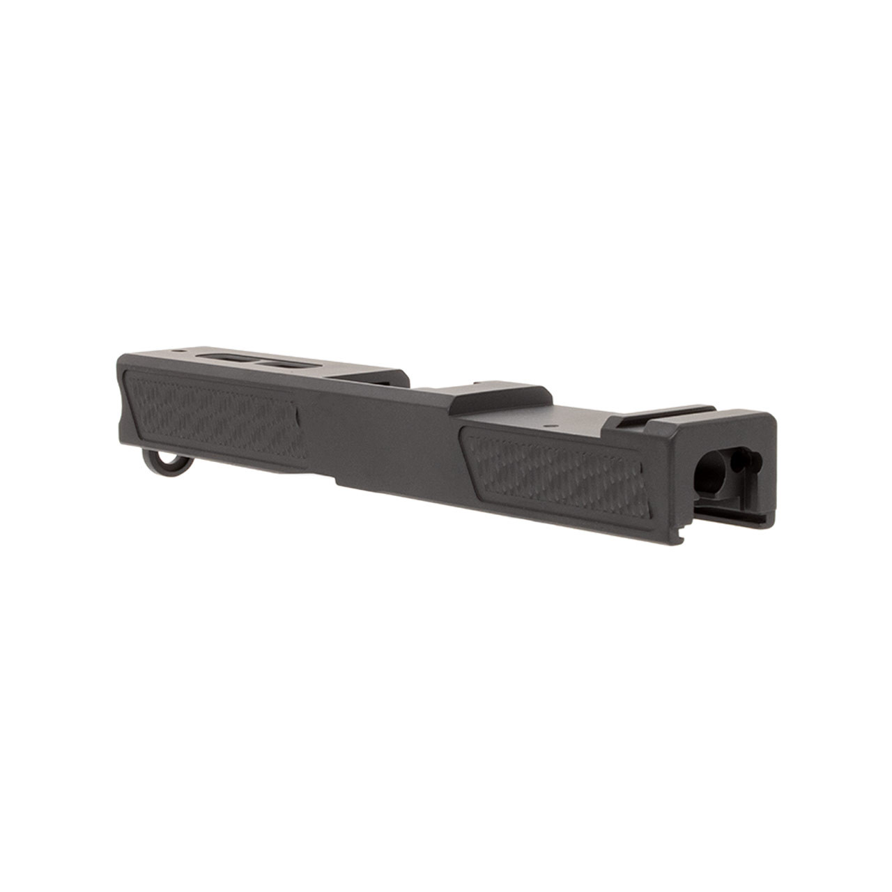 This GLOCK® 21-compatible slide features a slick bullnose profile with improved, multi-directional front and rear serrations providing improved grip.