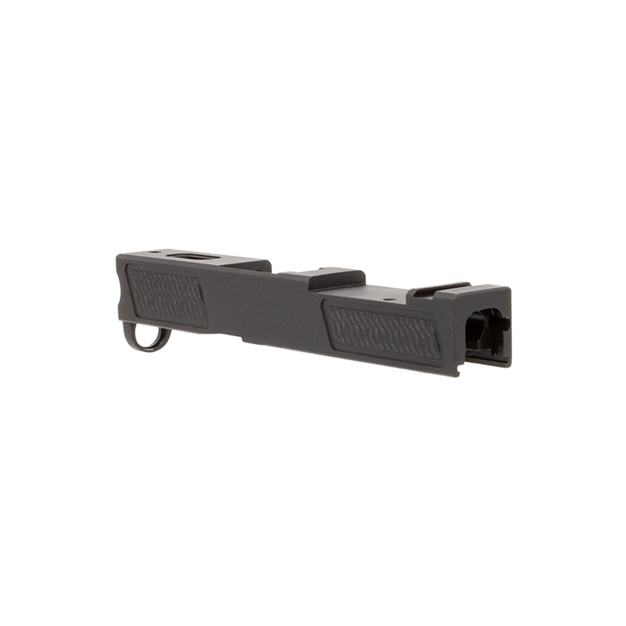 This upgraded GLOCK® 43 slide provides the perfect upgrade for your Gen 3 factory pistol or your Polymer80 build.