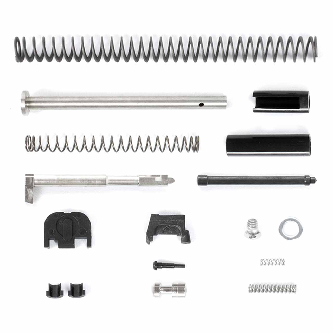 If you're going the 80% route and building yourself a gen 3 Glock® 17 compatible pistol, then you need an upper parts kit to match. So let us help you out. This Glock® 17 Compatible Upper Parts Kit is exactly what you need. It includes all the necessary internal parts to turn that full-sized chunk of metal into a working gen 3 Glock® 17 compatible slide. See below for more info.