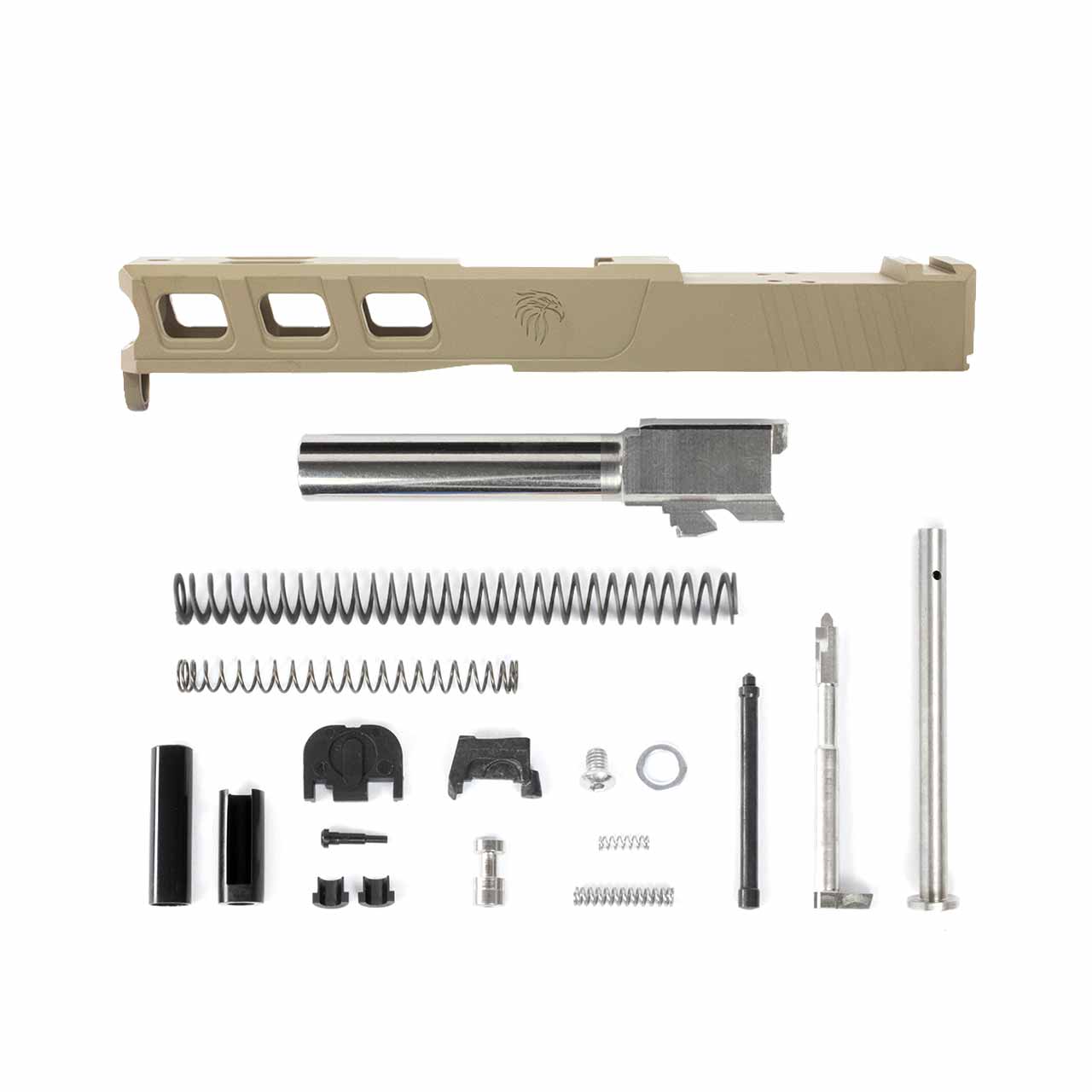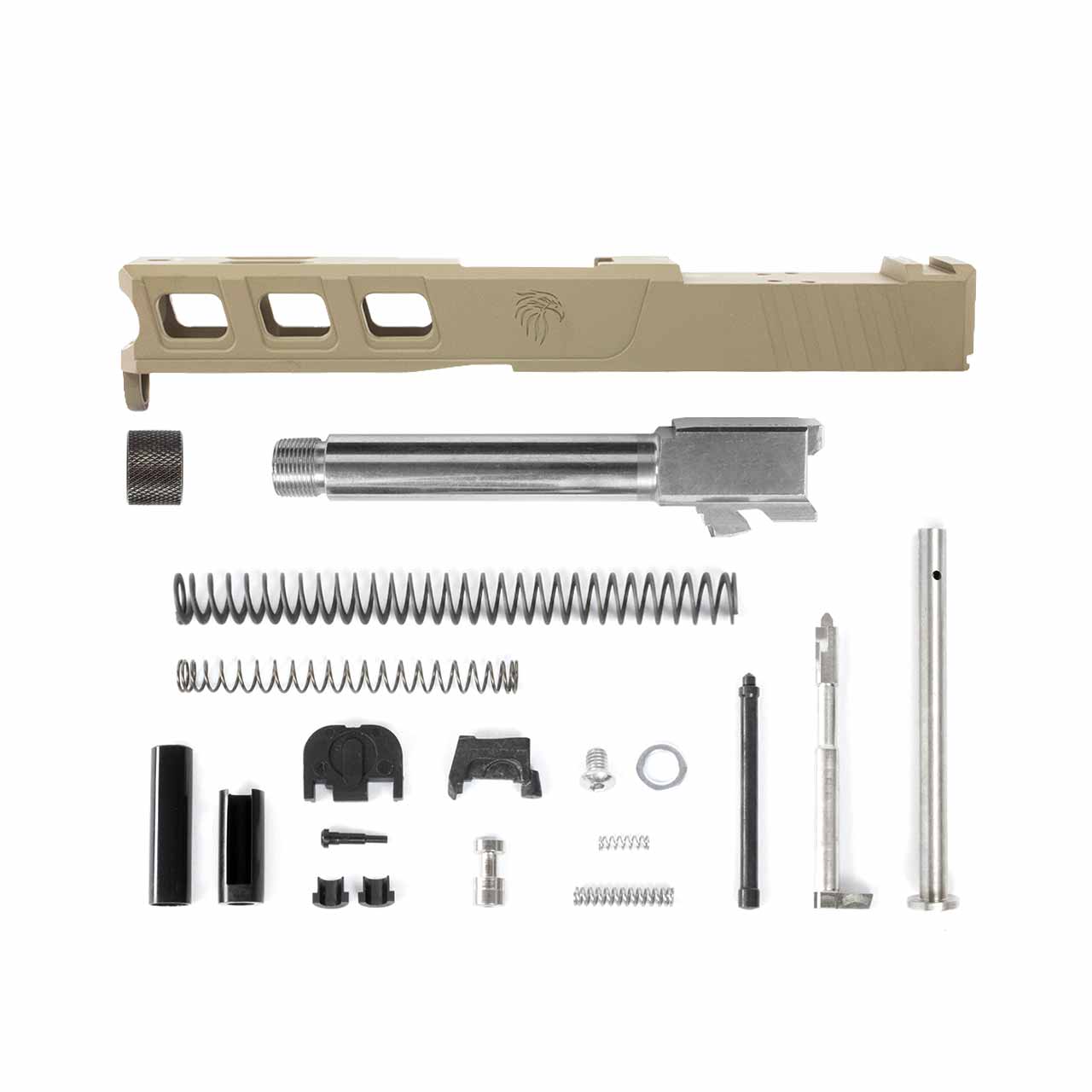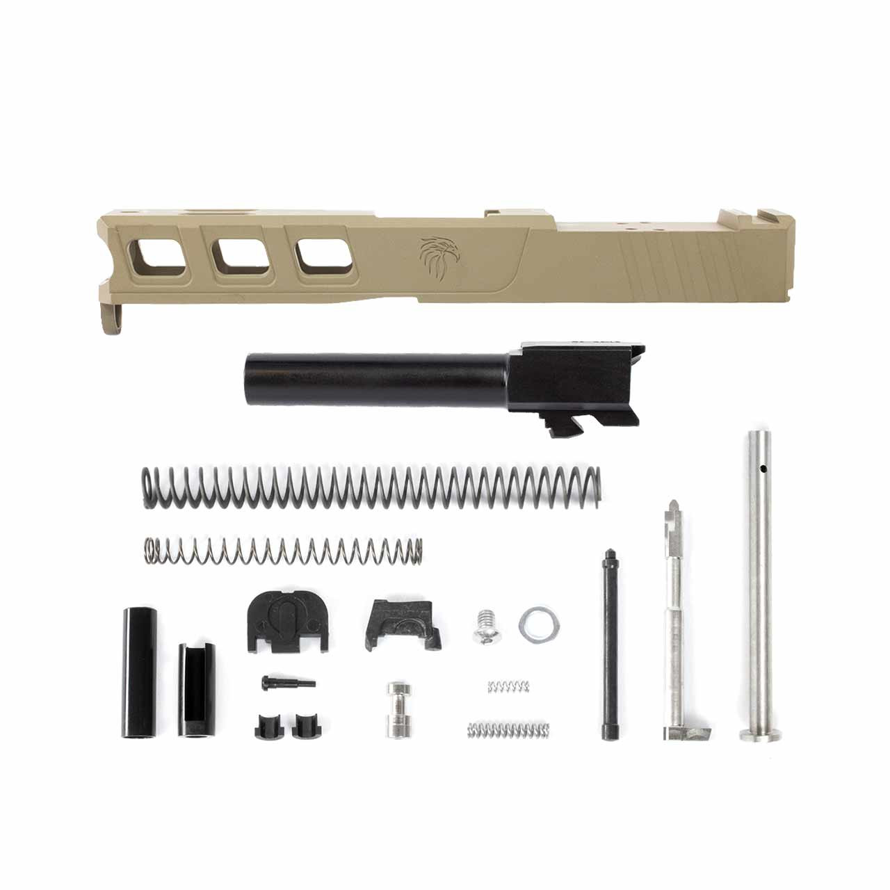 This kit comes with everything you need to assemble a custom slide, minus iron sights. You get a powdercoated LFA Elite slide, complete parts kit, and optional barrel threads so you can add a muzzle device, compensator, or suppressor.