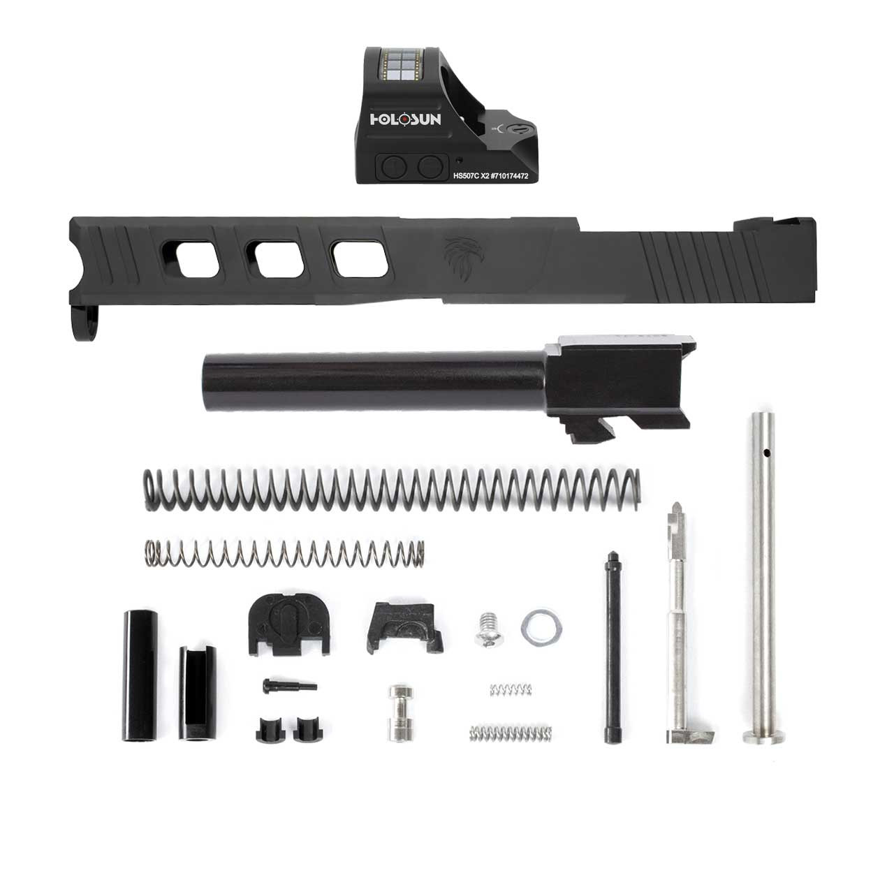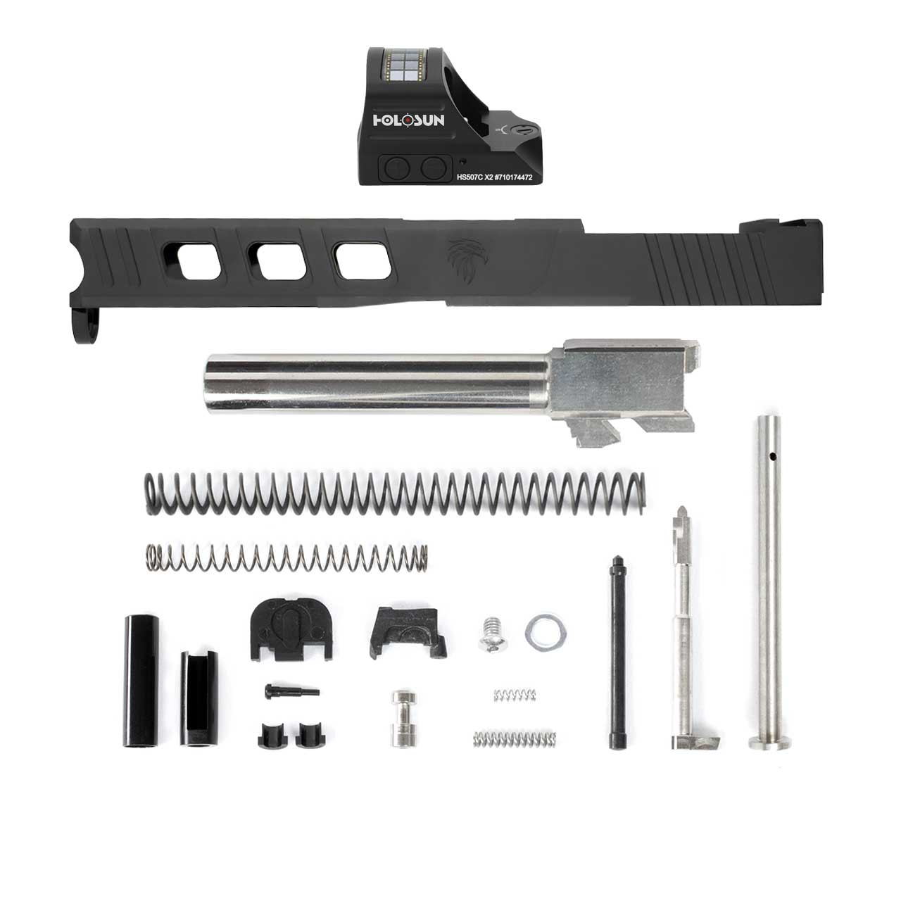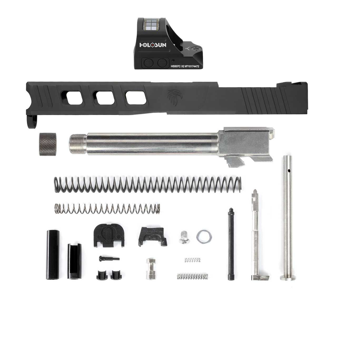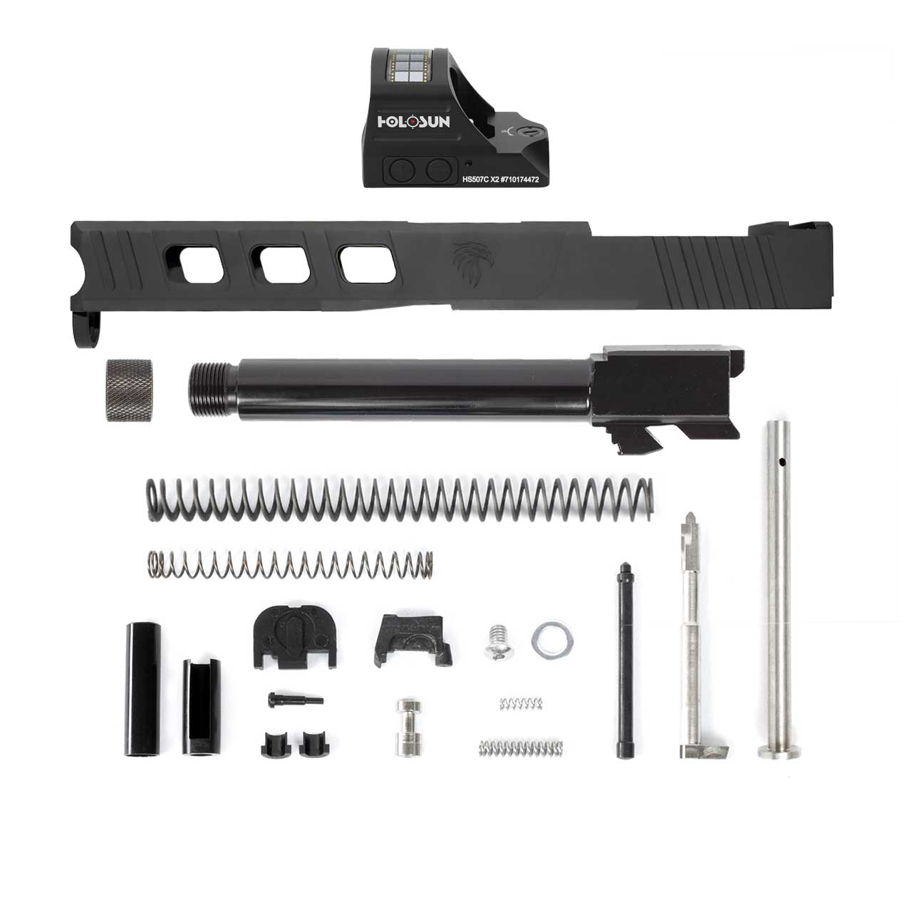 This kit also includes a Holosun 507C-X2, one of the most popular handgun red dot optics on the market today. Paired with this slide and your finished frame, your Pf940V2 build will look good, provide high accuracy, and offer quick target acquisition with quality components.