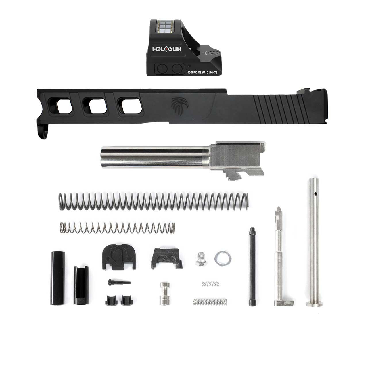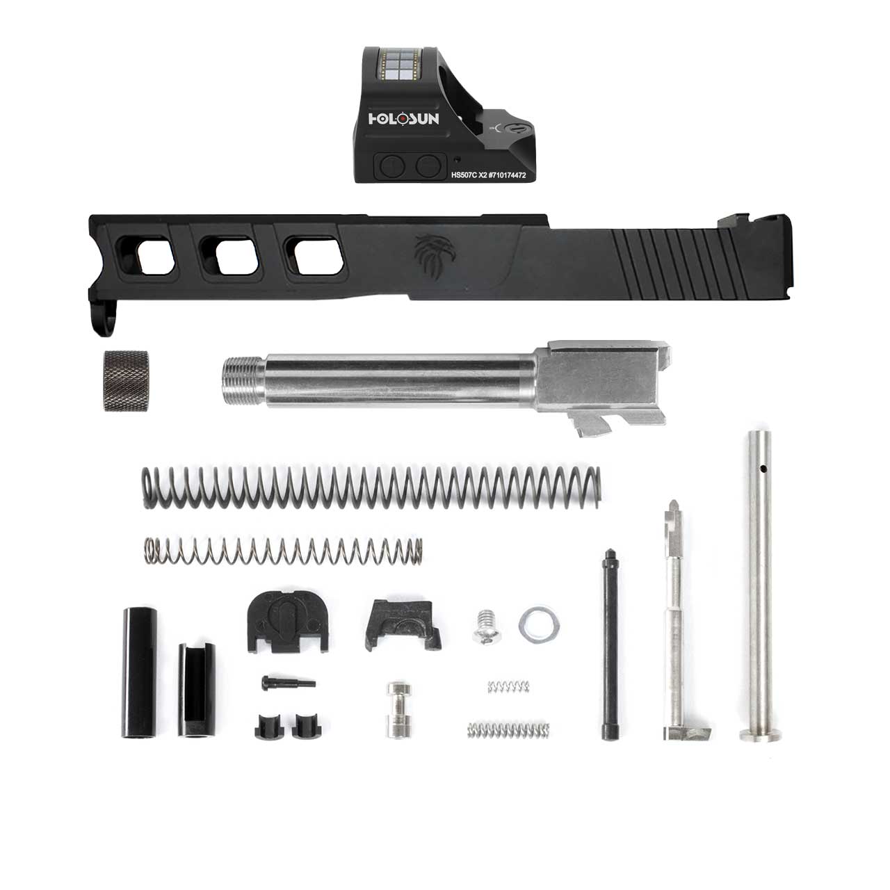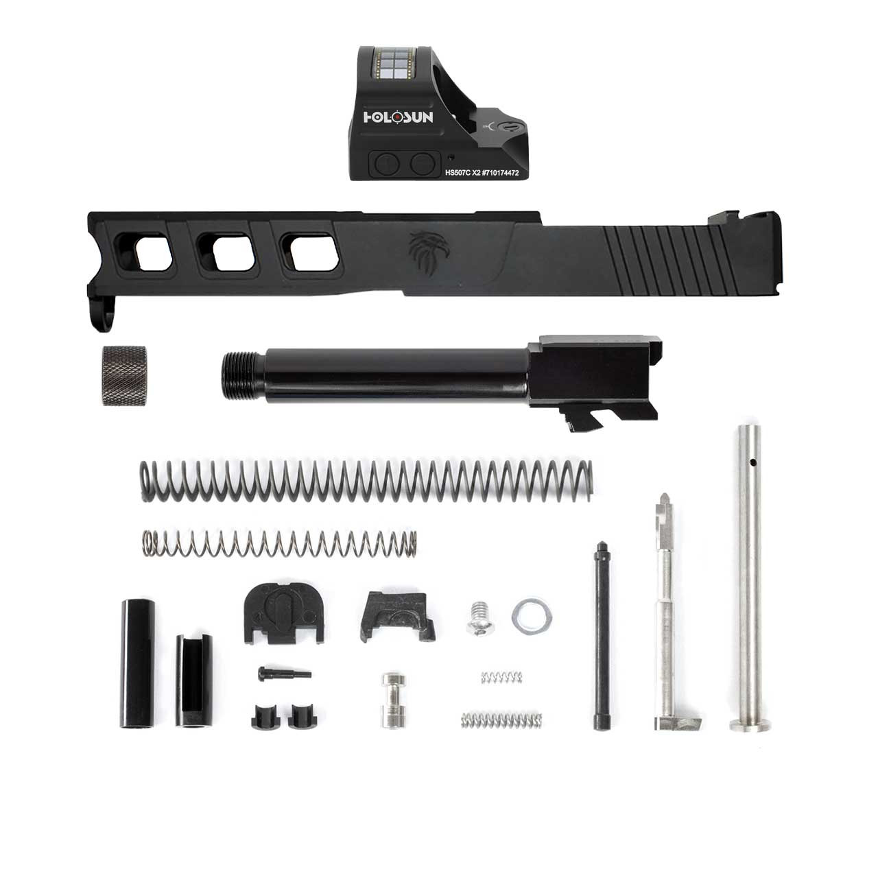 We've made it easier than ever to assemble and upgrade your Polymer80 PF940C frame with this two-for-one combo slide kit. You're getting a quality, custom LFA Elite slide that's pre-cut for the included Holosun 507C-X2 red dot. Also included is a high-quality barrel available with or without threads.