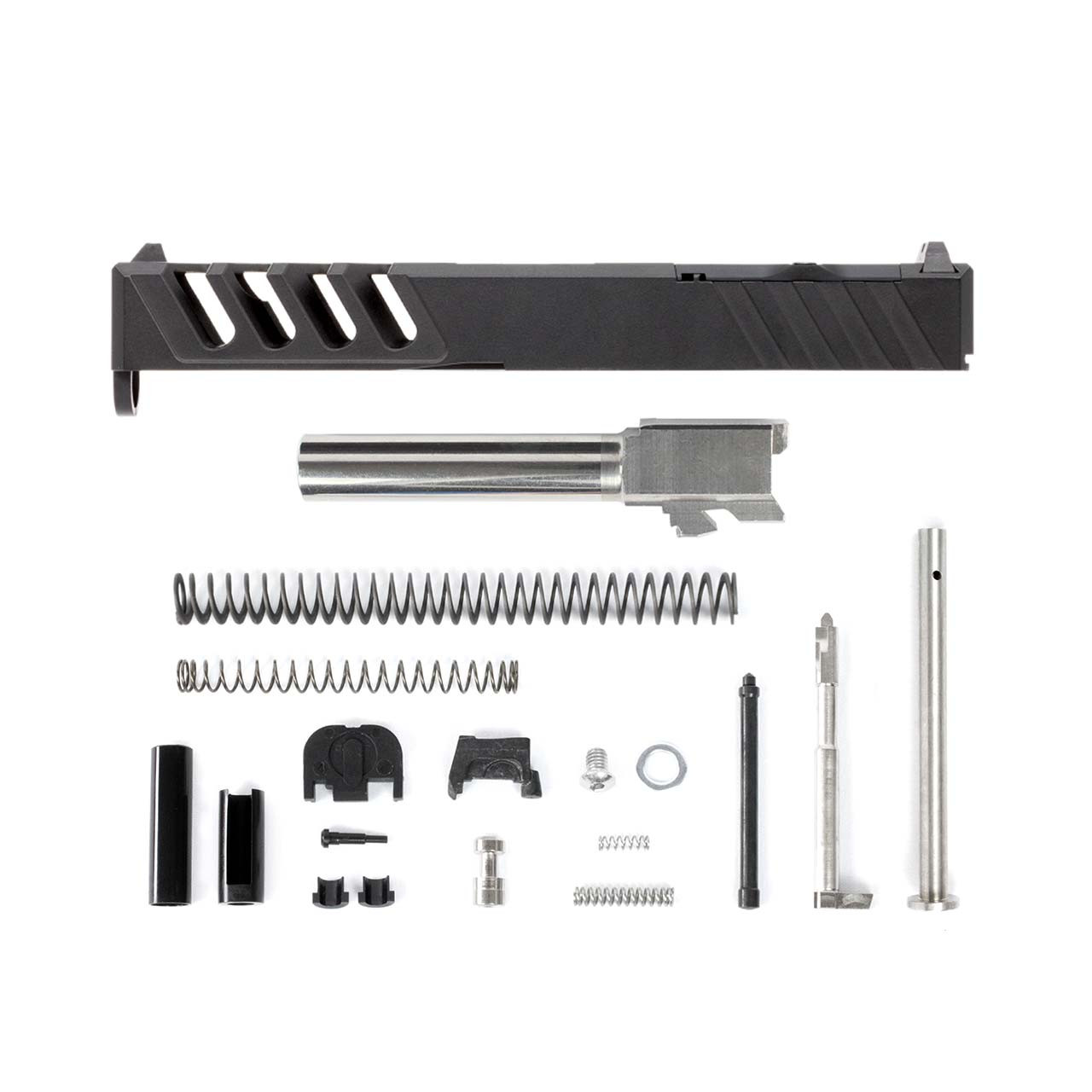 This kit comes with everything you need to assemble a custom slide. Select a threaded barrel so you can add a muzzle device, compensator, or suppressor.