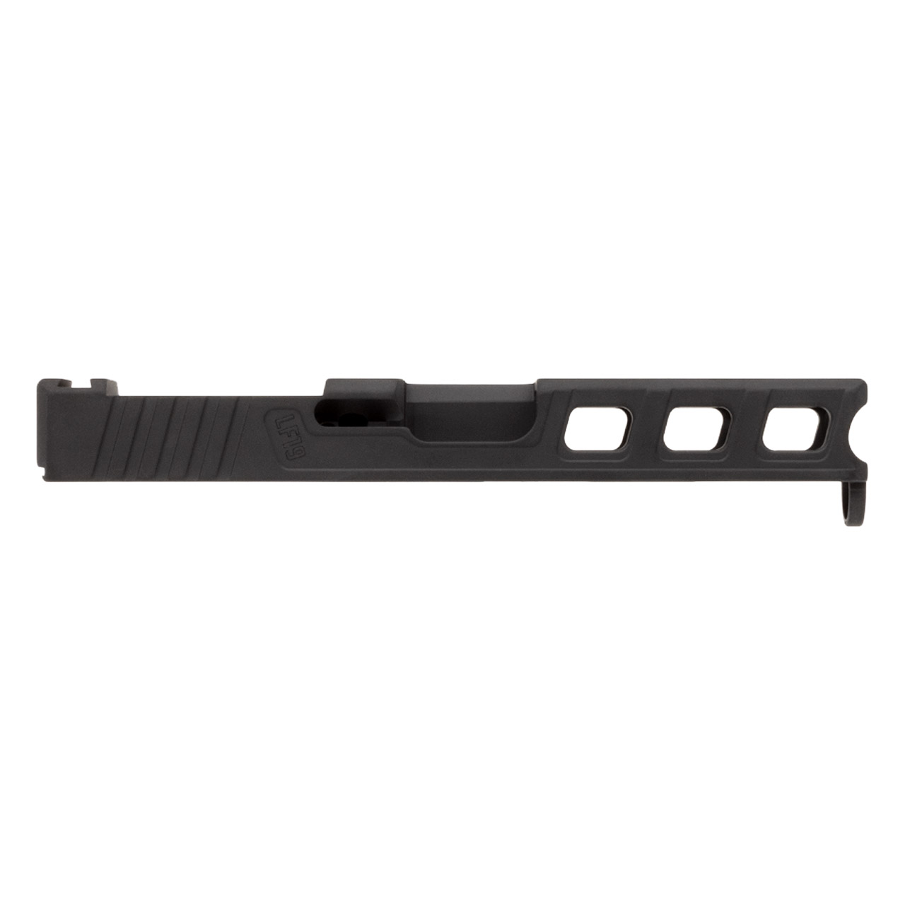This GLOCK® 19-compatible slide features plenty of upgrades over any OEM-spec slide. Forged from high-strength 416R stainless and heat-treated before receiving a matte black Cerakote finish.