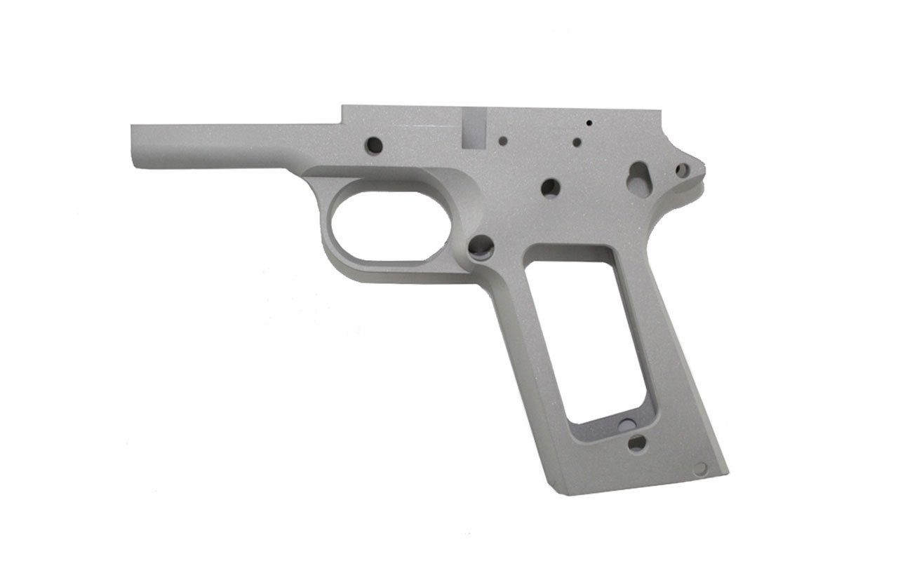 The .45 ACP Government 1911 80% Frame is CNC-Machined using 7075 heat-treated aluminum. Sporting a bead-blasted finish, it's ready for your custom coating, paintjob, or finish. Since it's made from rugged aluminum, it's also 60% lighter than the typical steel 1911 frame. It's the perfect candidate for building a one-off shooter.